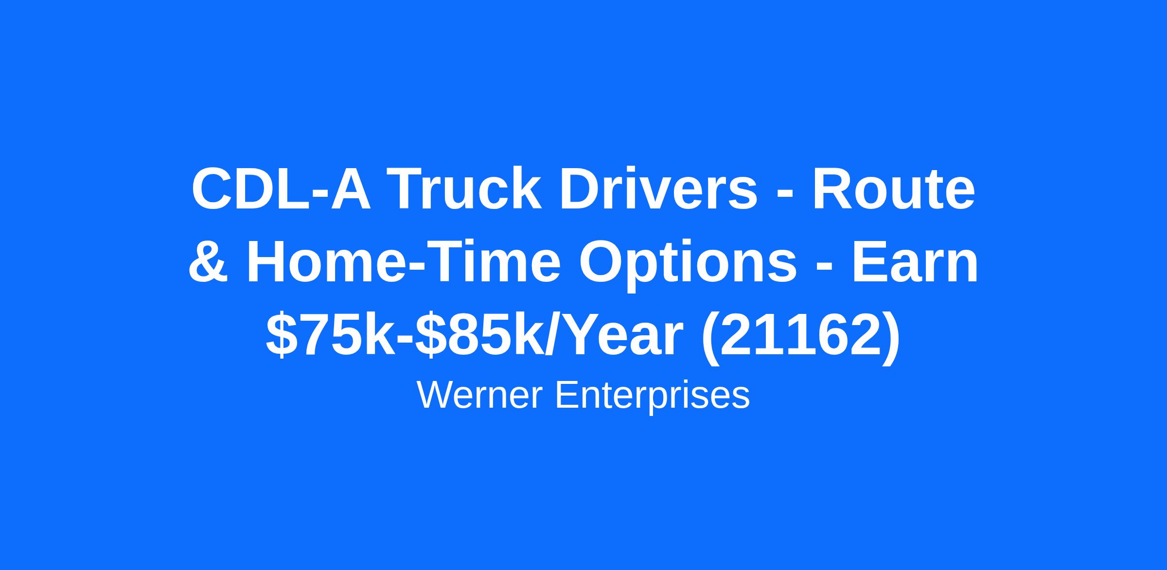CDL-A Truck Drivers - Route & Home-Time Options - Earn $75k-$85k/Year (21162)