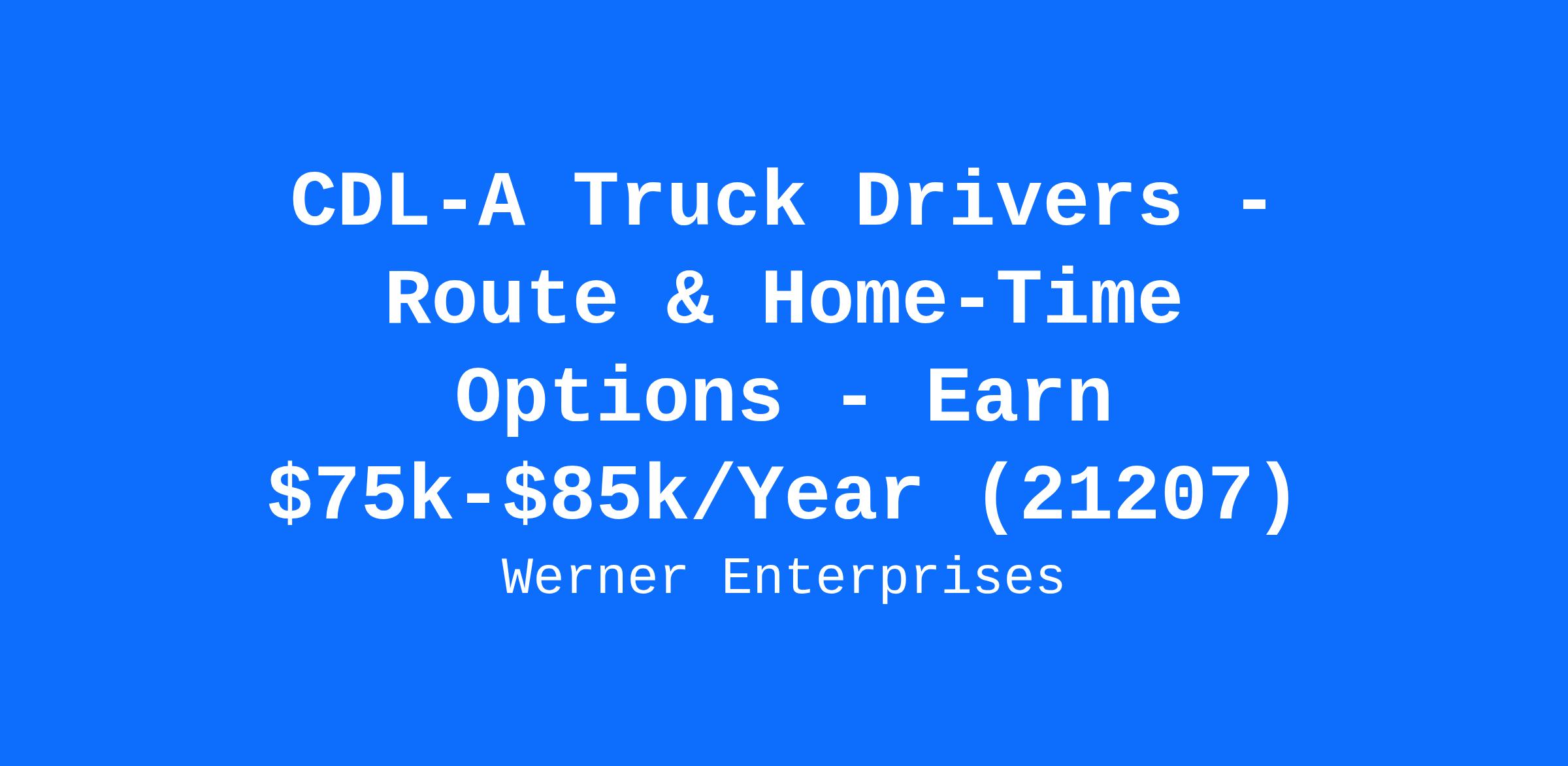 CDL-A Truck Drivers - Route & Home-Time Options - Earn $75k-$85k/Year (21207)