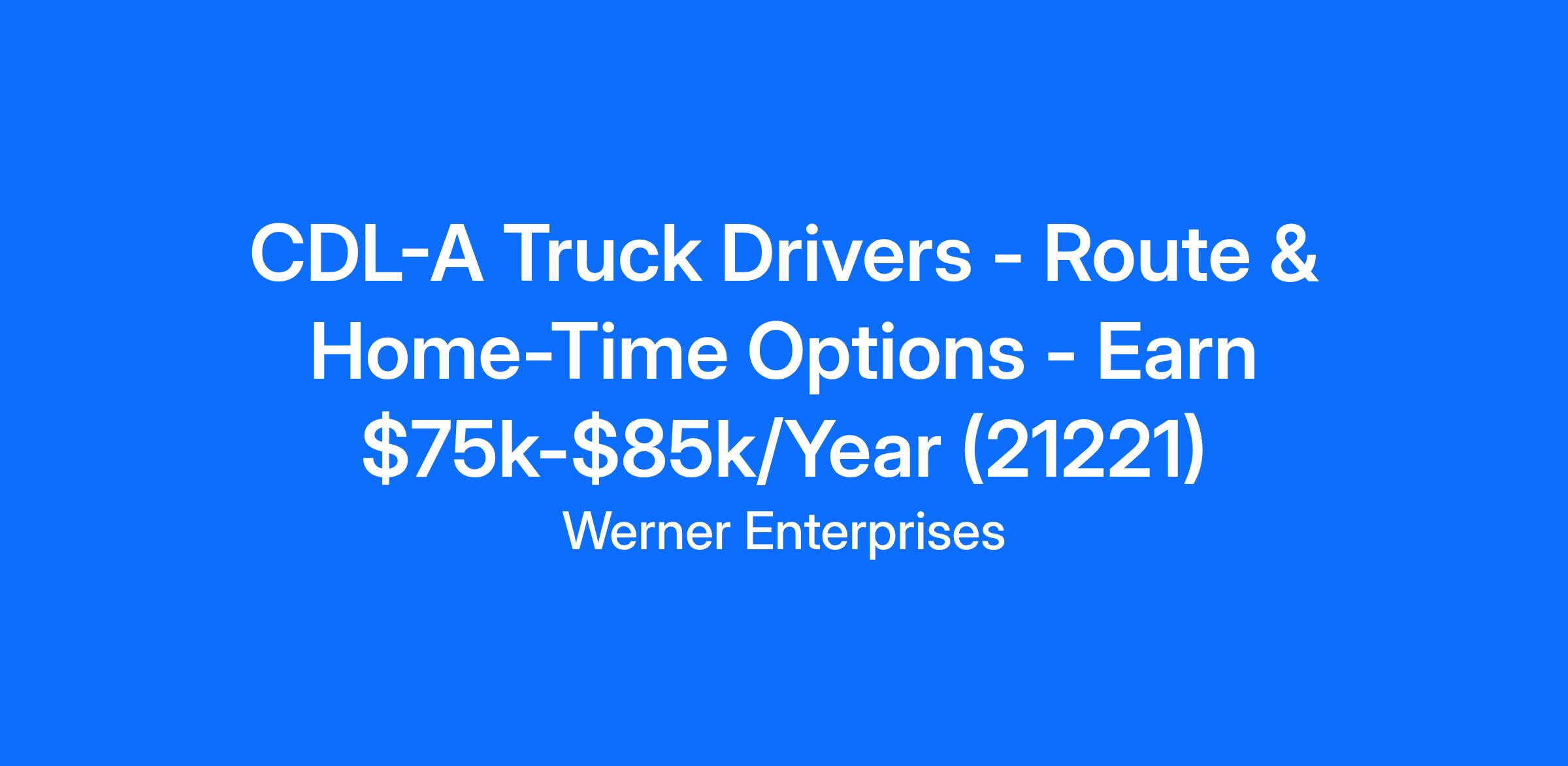 CDL-A Truck Drivers - Route & Home-Time Options - Earn $75k-$85k/Year (21221)