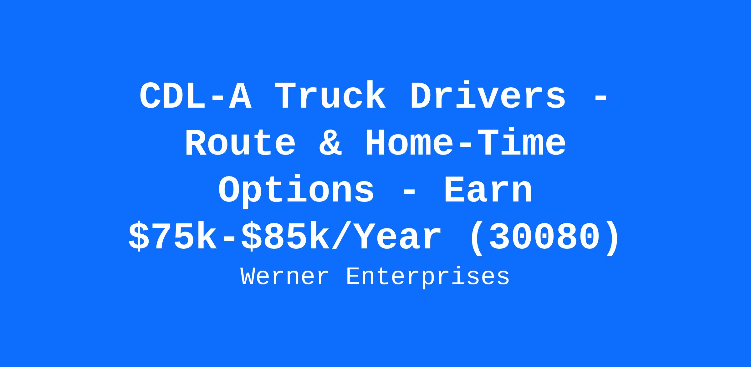 CDL-A Truck Drivers - Route & Home-Time Options - Earn $75k-$85k/Year (30080)