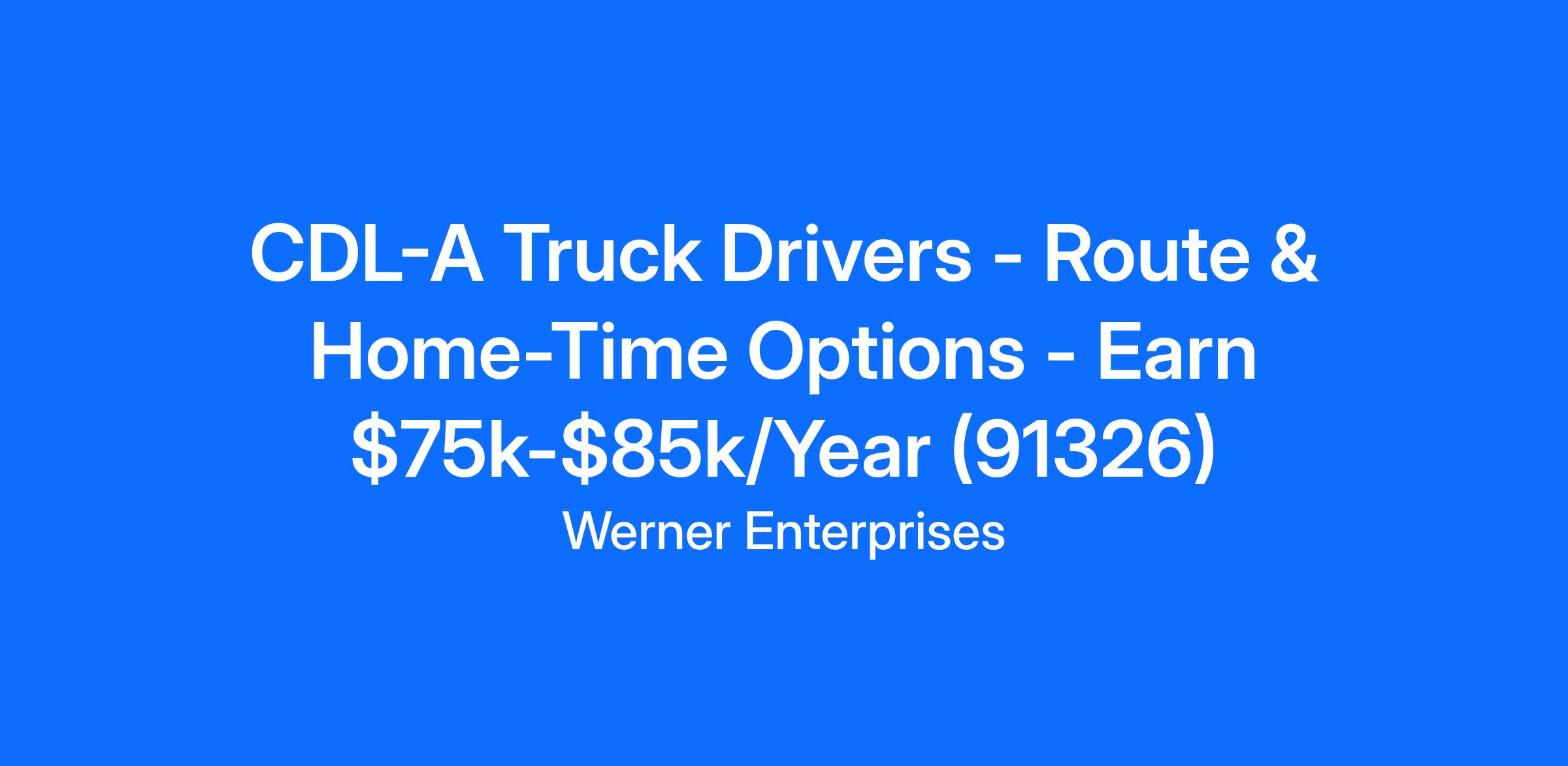 CDL-A Truck Drivers - Route & Home-Time Options - Earn $75k-$85k/Year (91326)