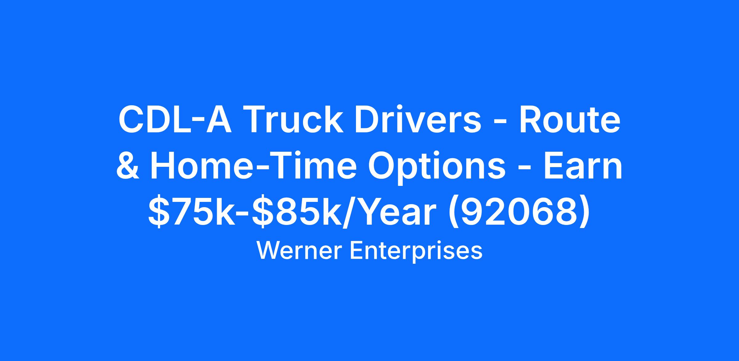CDL-A Truck Drivers - Route & Home-Time Options - Earn $75k-$85k/Year (92068)