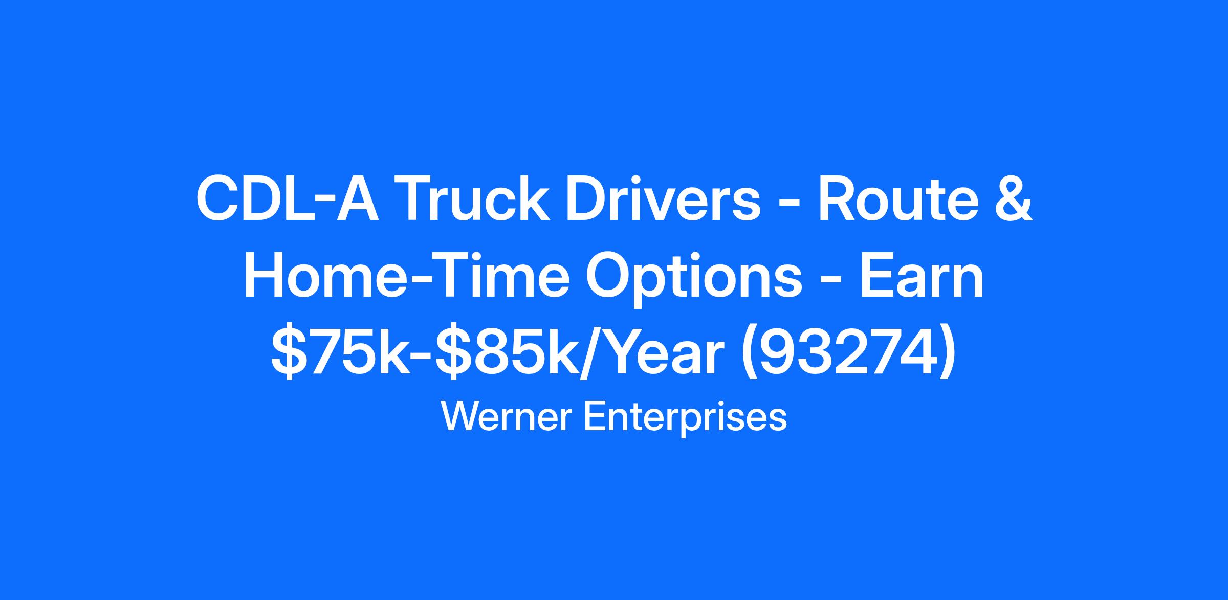 CDL-A Truck Drivers - Route & Home-Time Options - Earn $75k-$85k/Year (93274)