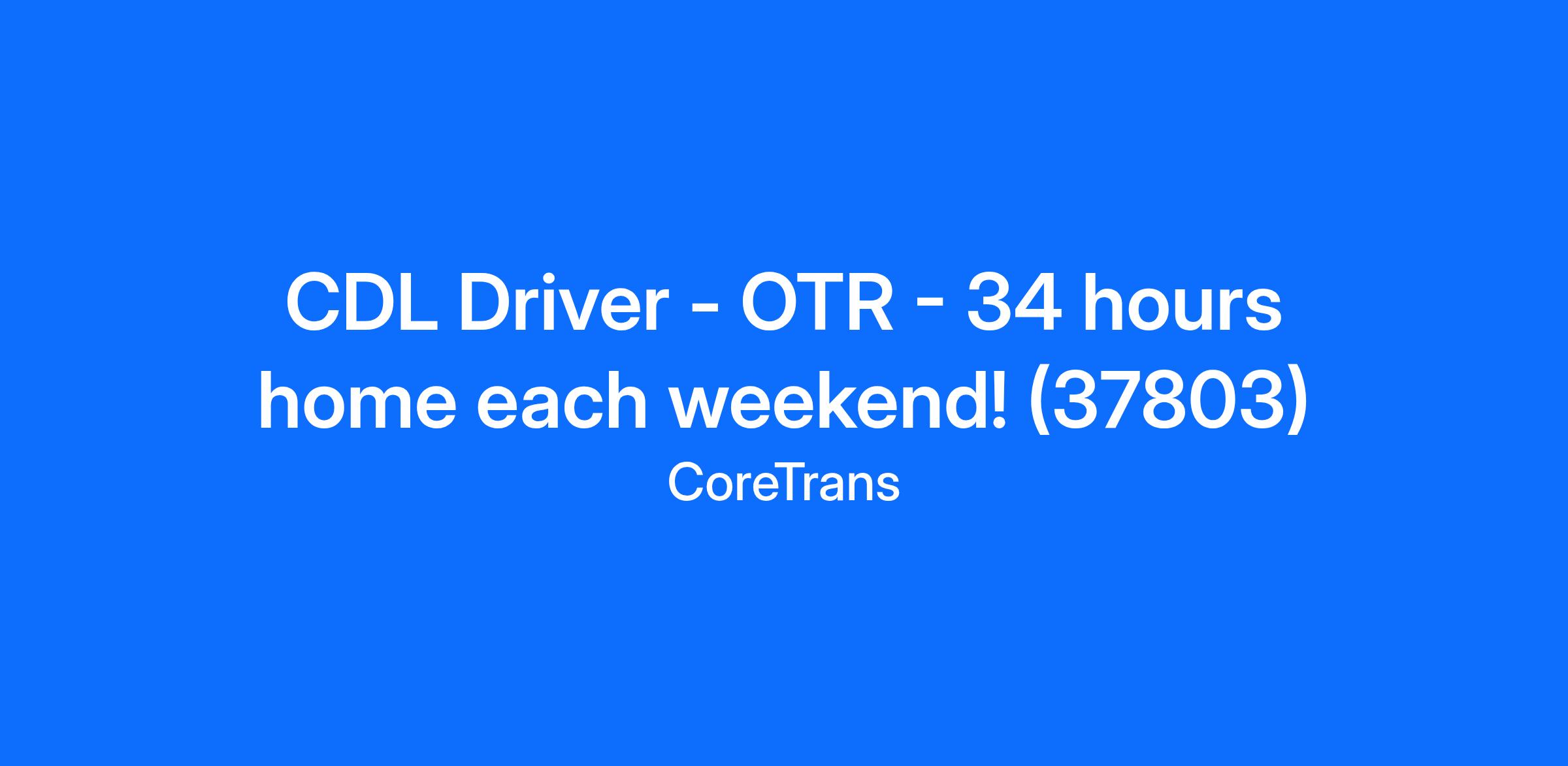 CDL Driver - OTR - 34 hours home each weekend! (37803)