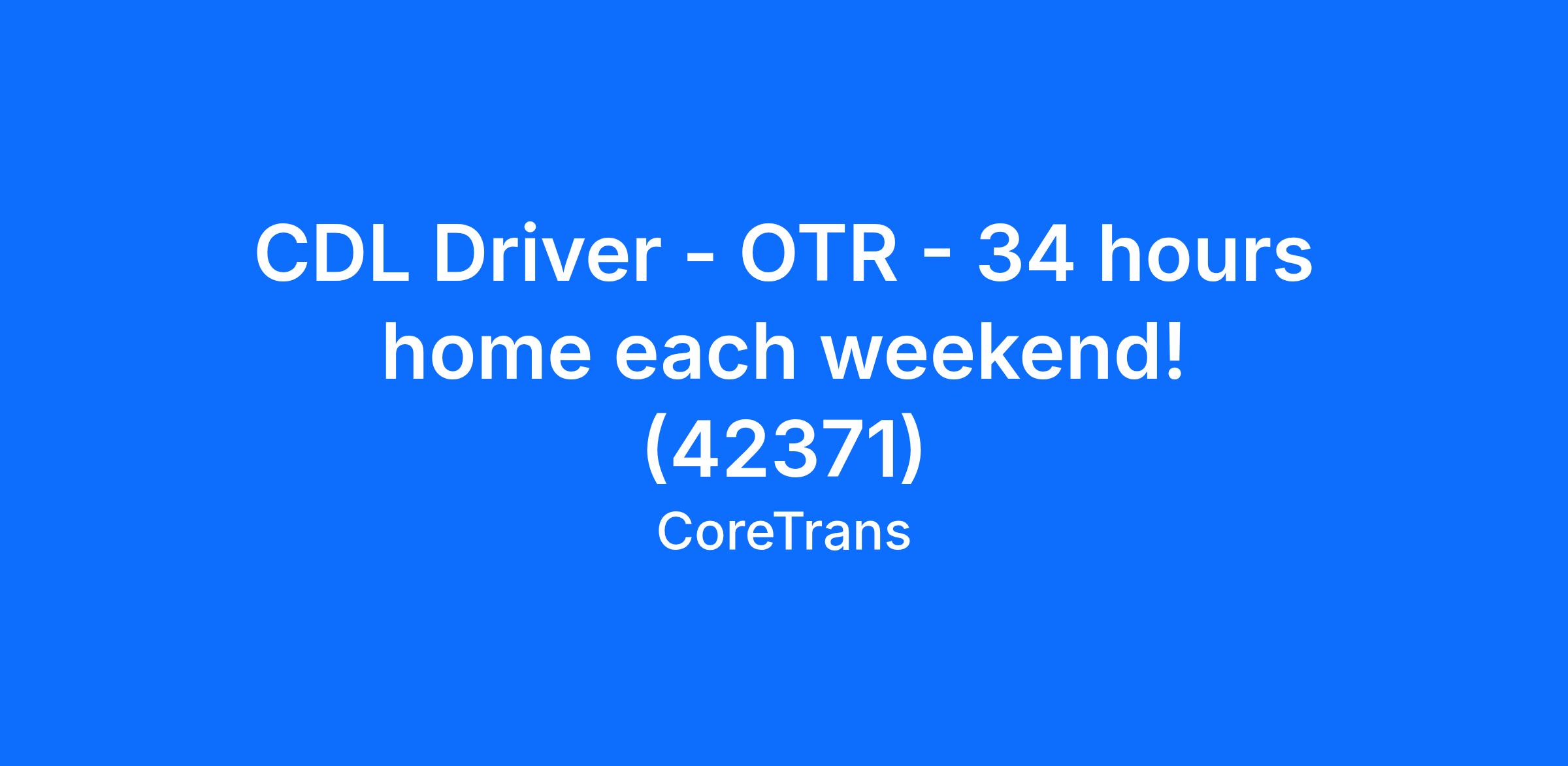 CDL Driver - OTR - 34 hours home each weekend! (42371)