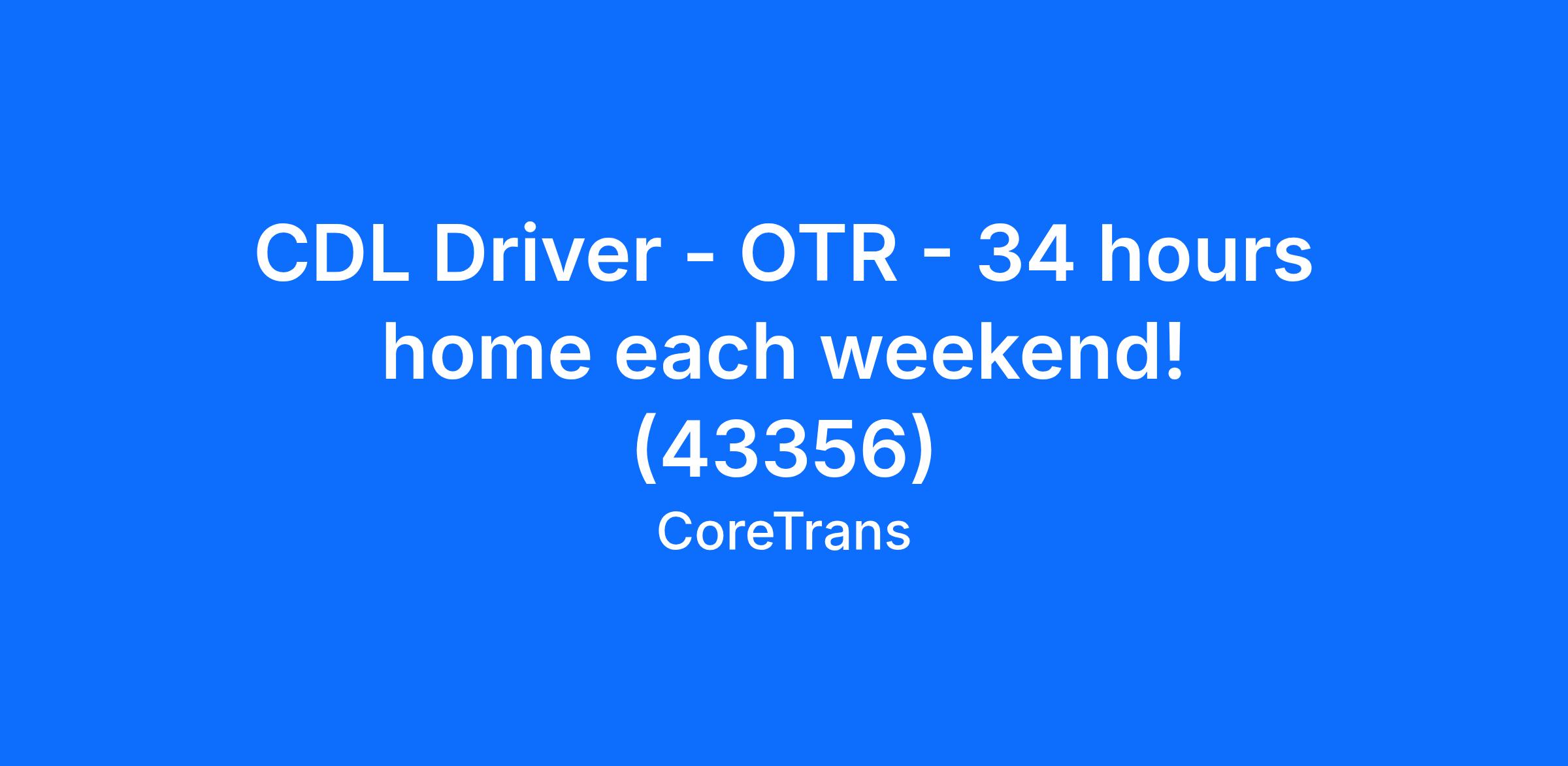 CDL Driver - OTR - 34 hours home each weekend! (43356)