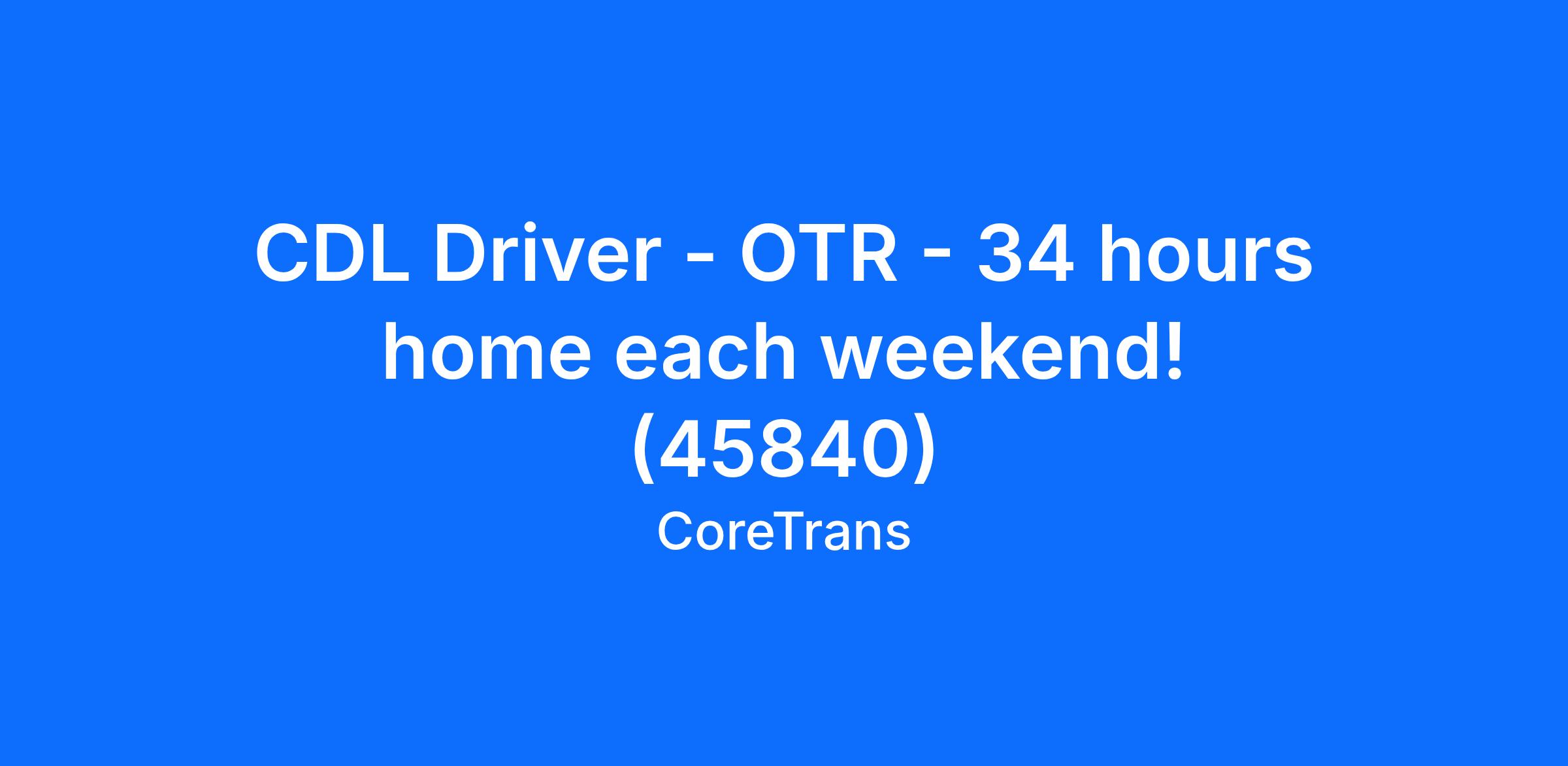 CDL Driver - OTR - 34 hours home each weekend! (45840)