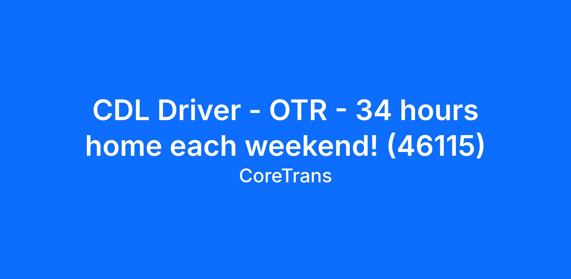 CDL Driver - OTR - 34 hours home each weekend! (46115)