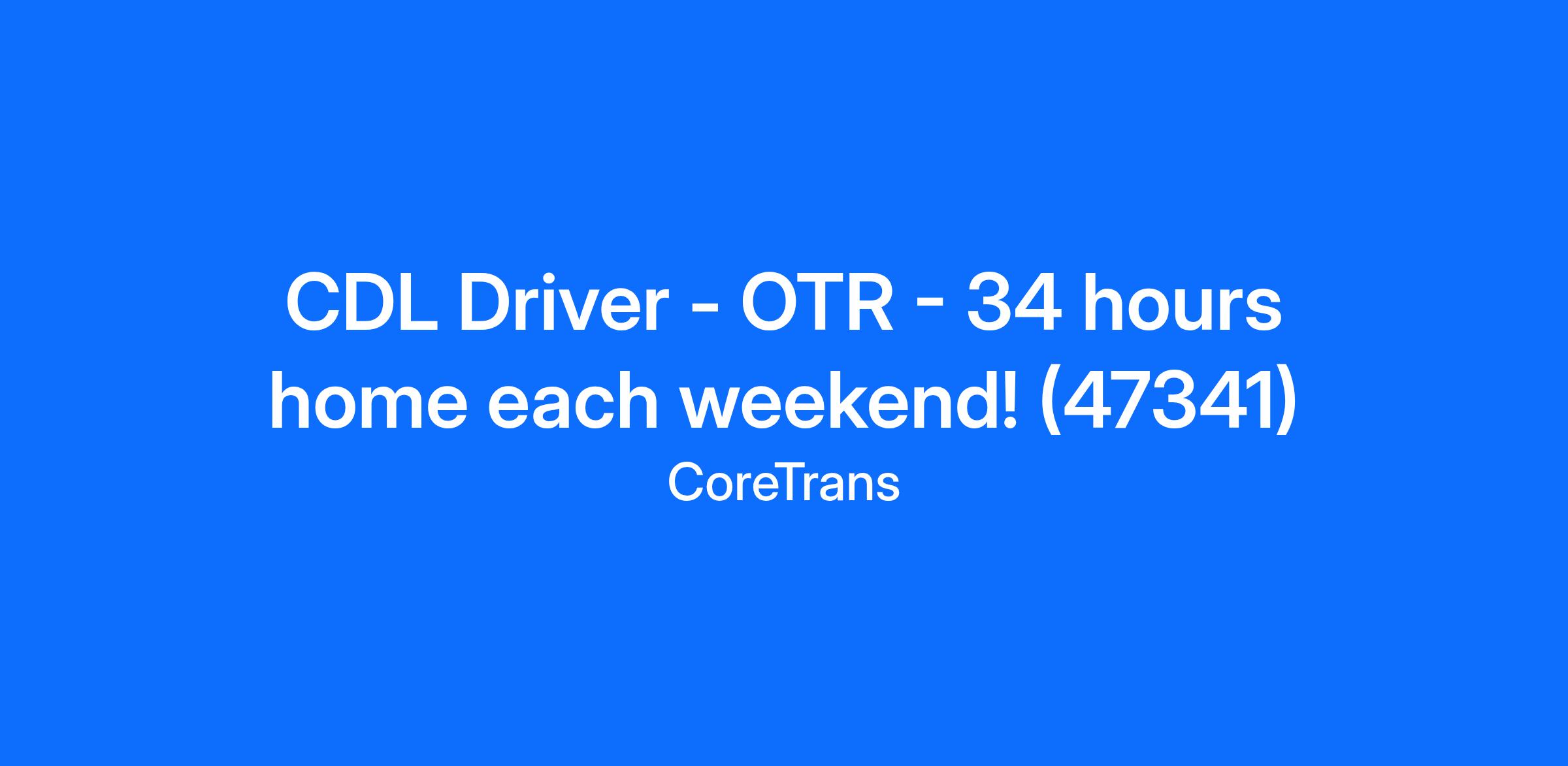 CDL Driver - OTR - 34 hours home each weekend! (47341)