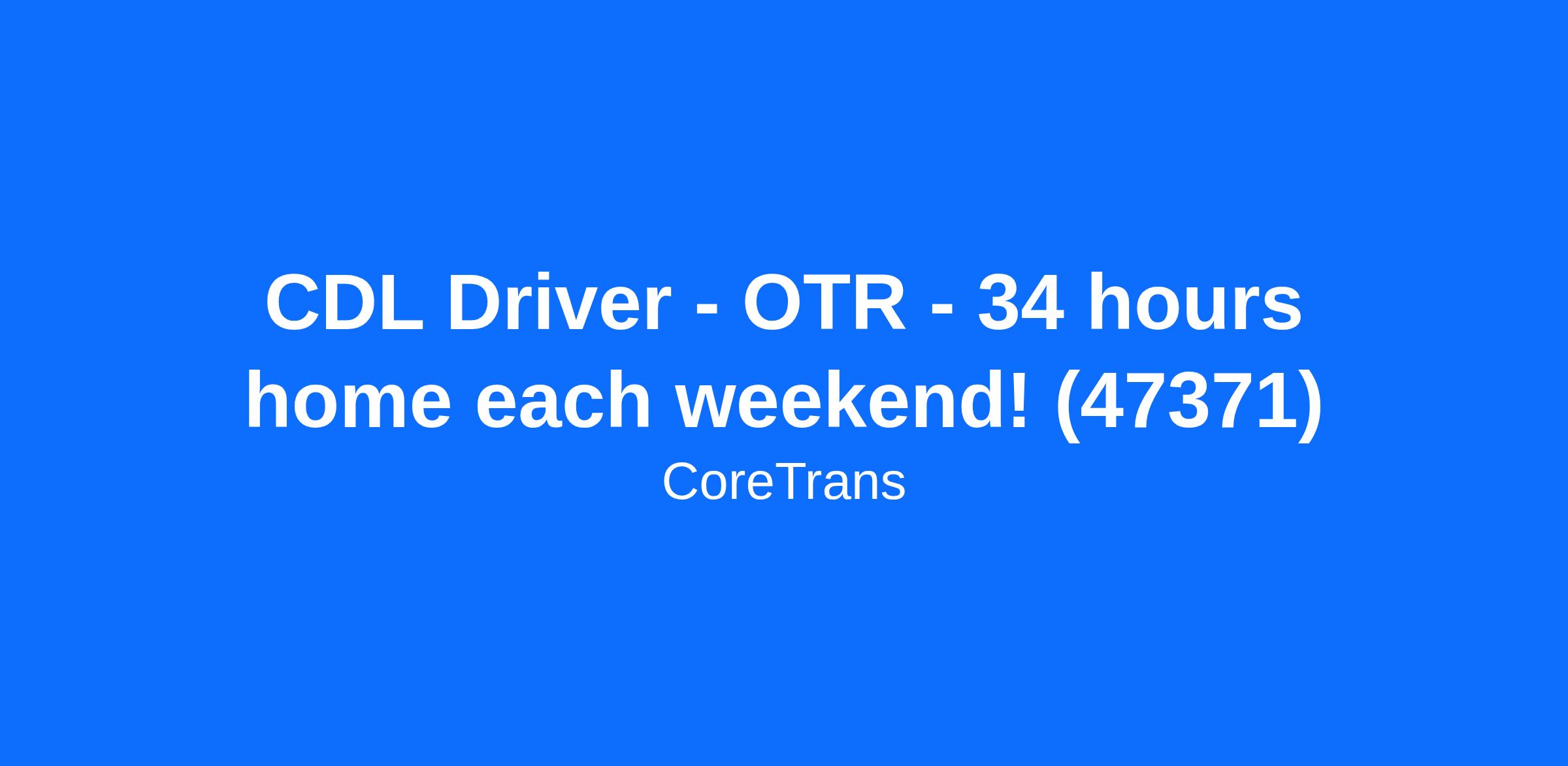 CDL Driver - OTR - 34 hours home each weekend! (47371)