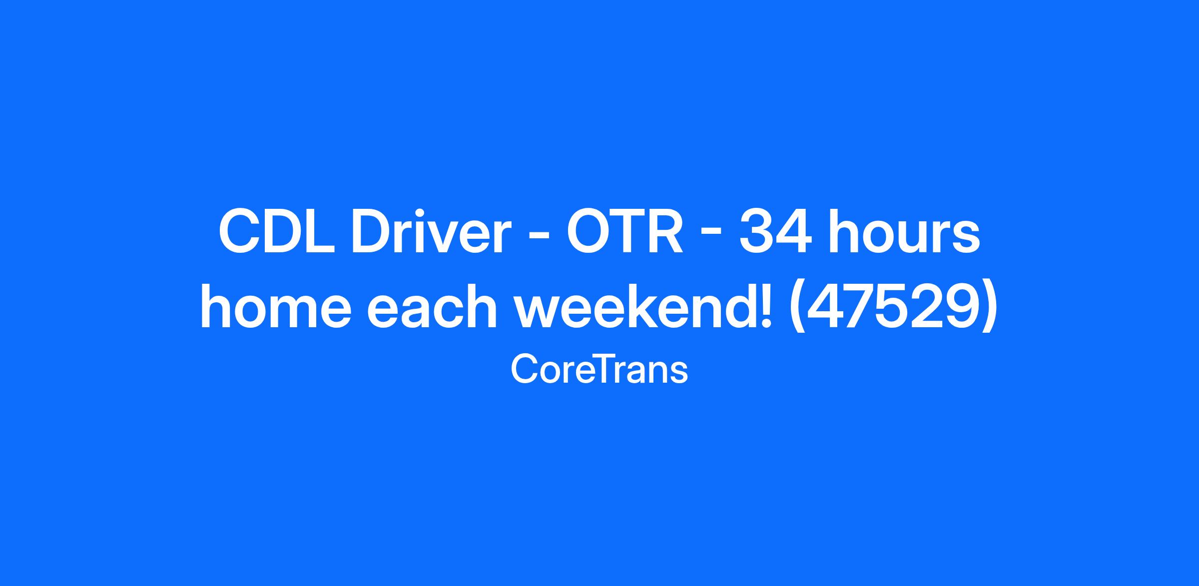 CDL Driver - OTR - 34 hours home each weekend! (47529)