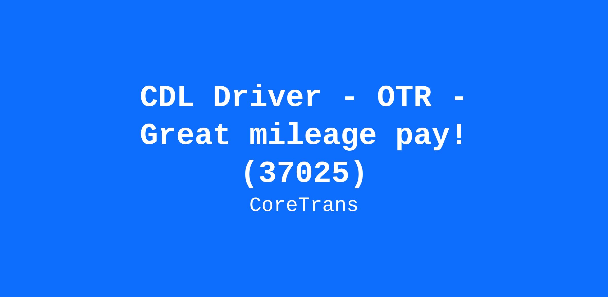 CDL Driver - OTR - Great mileage pay! (37025)
