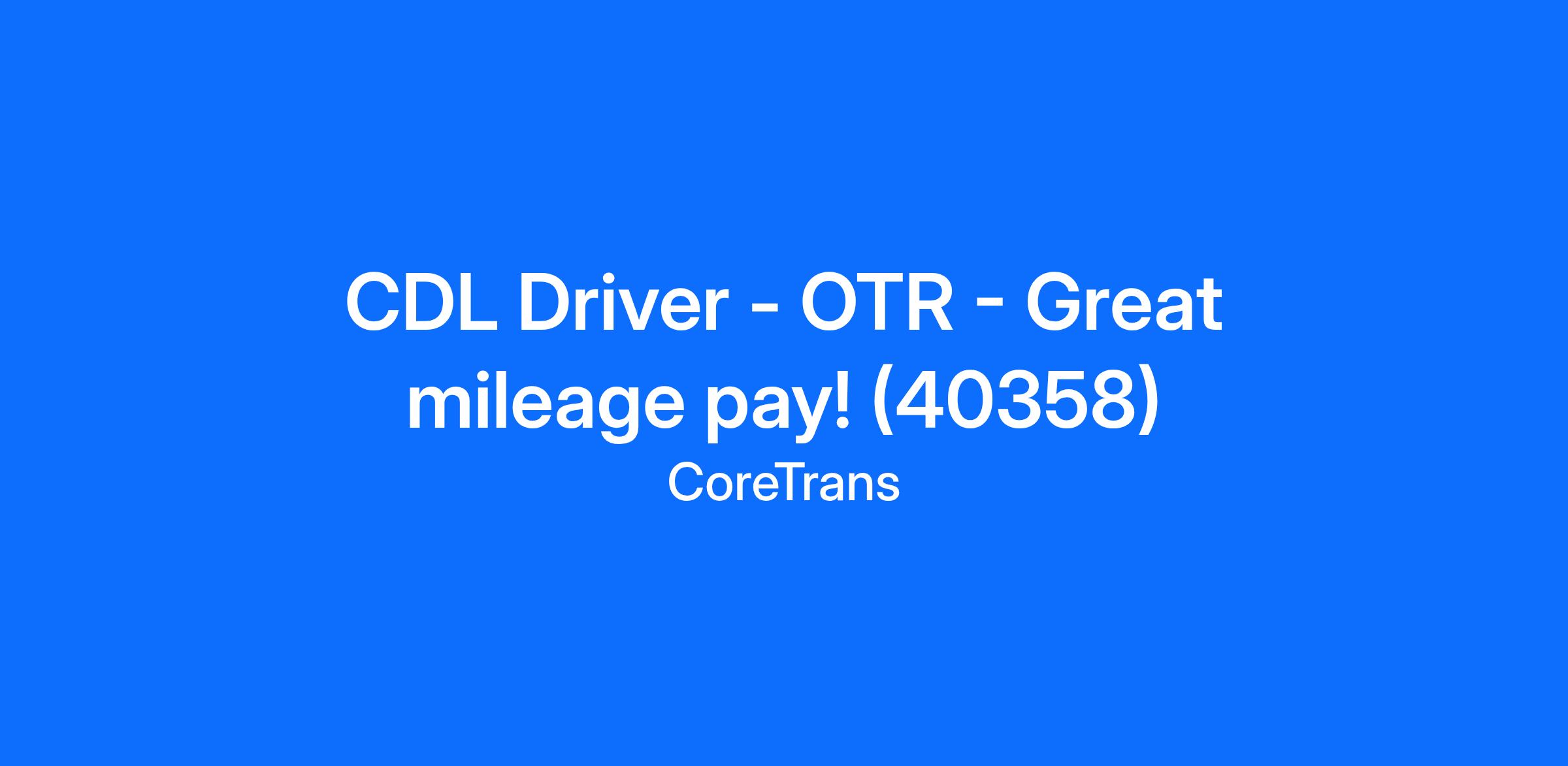 CDL Driver - OTR - Great mileage pay! (40358)