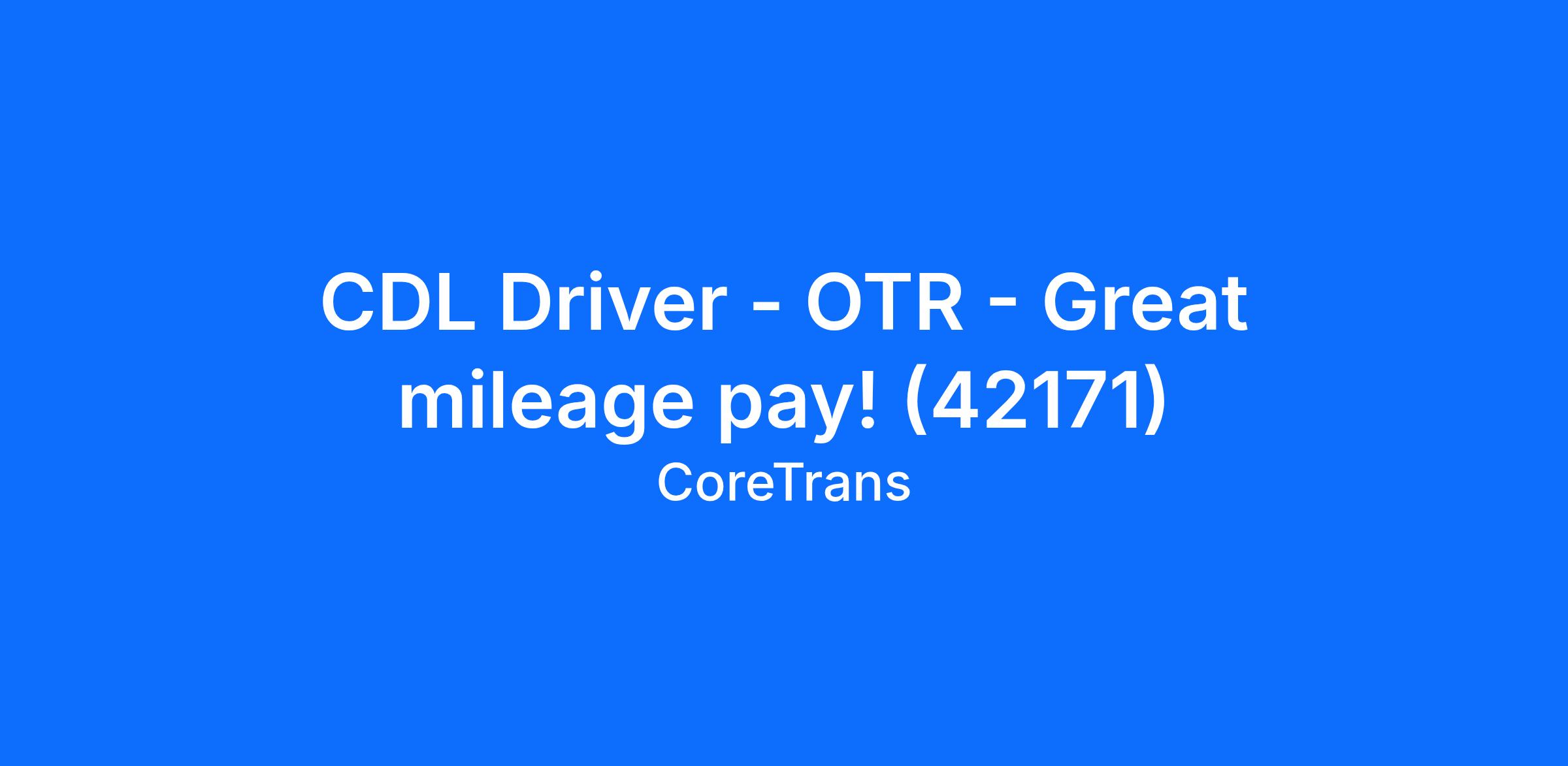 CDL Driver - OTR - Great mileage pay! (42171)