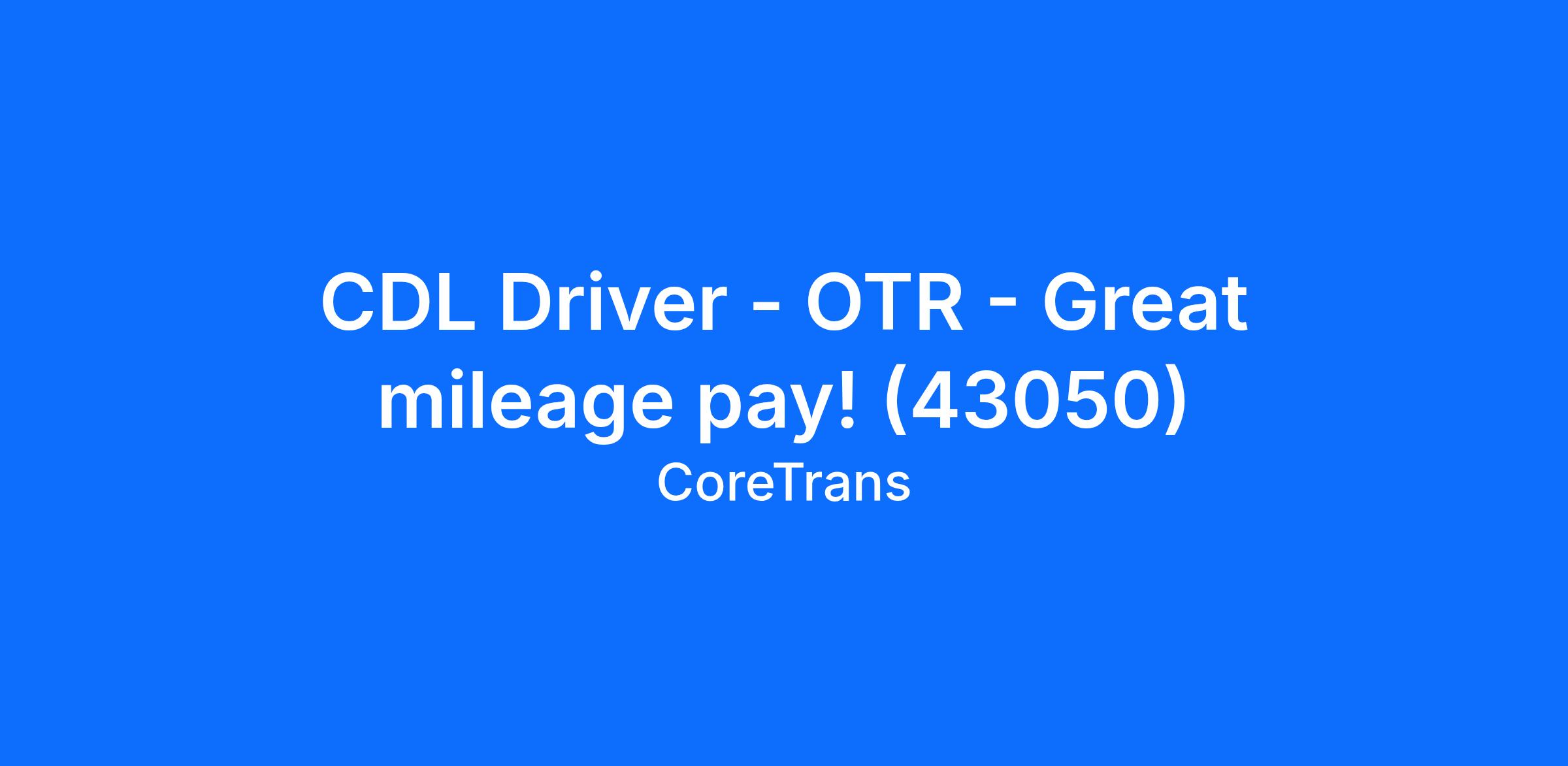 CDL Driver - OTR - Great mileage pay! (43050)