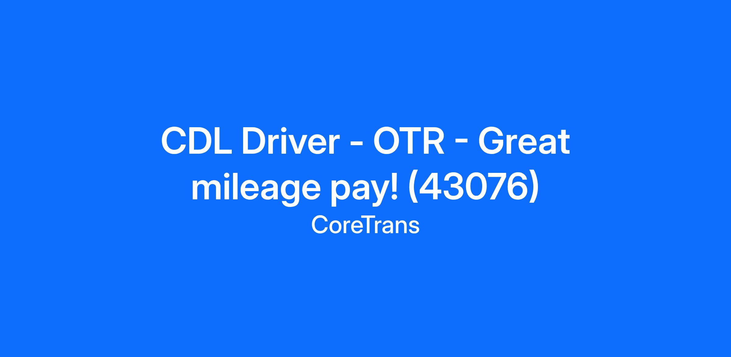 CDL Driver - OTR - Great mileage pay! (43076)