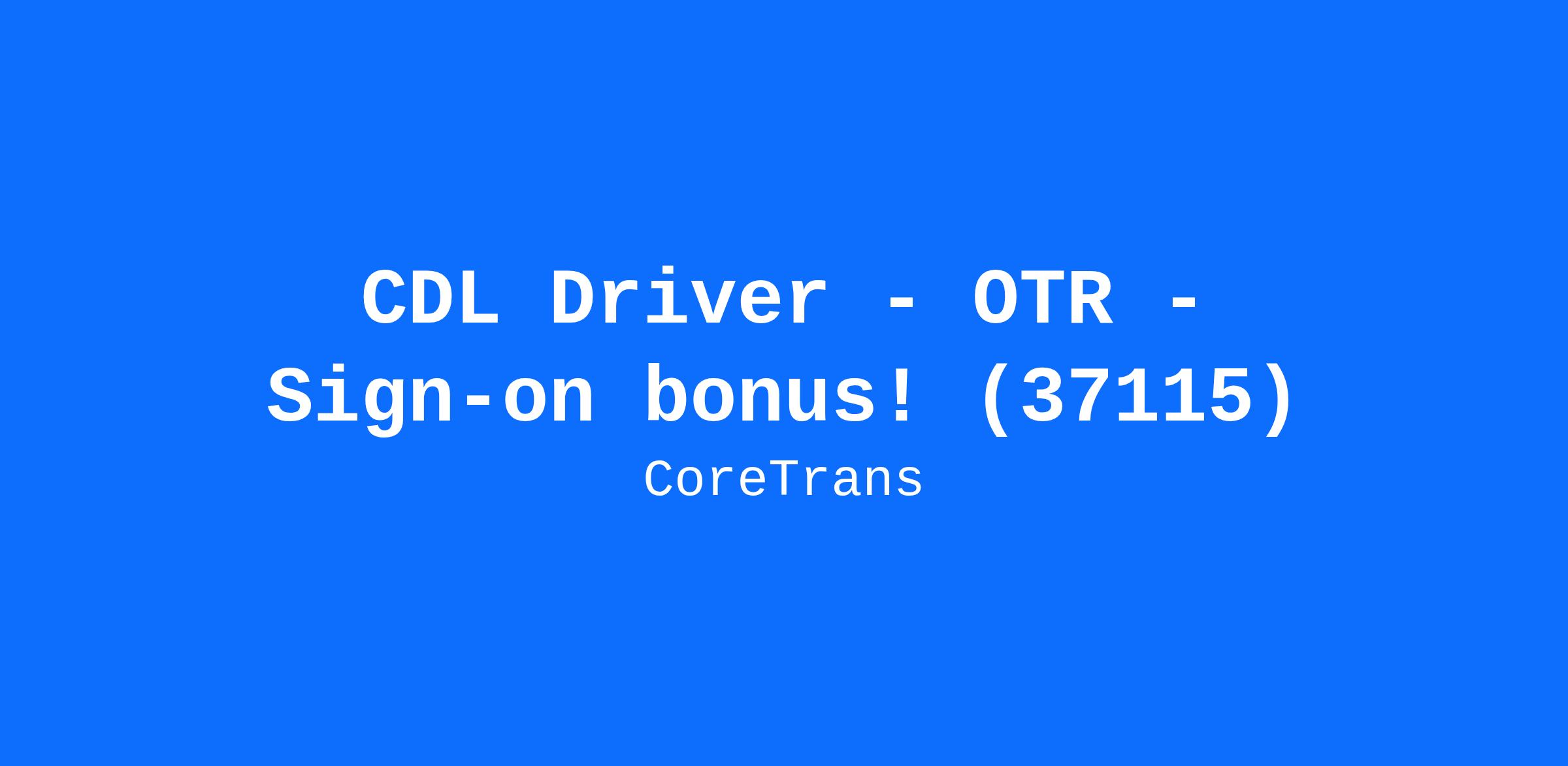 CDL Driver - OTR - Sign-on bonus! (37115)