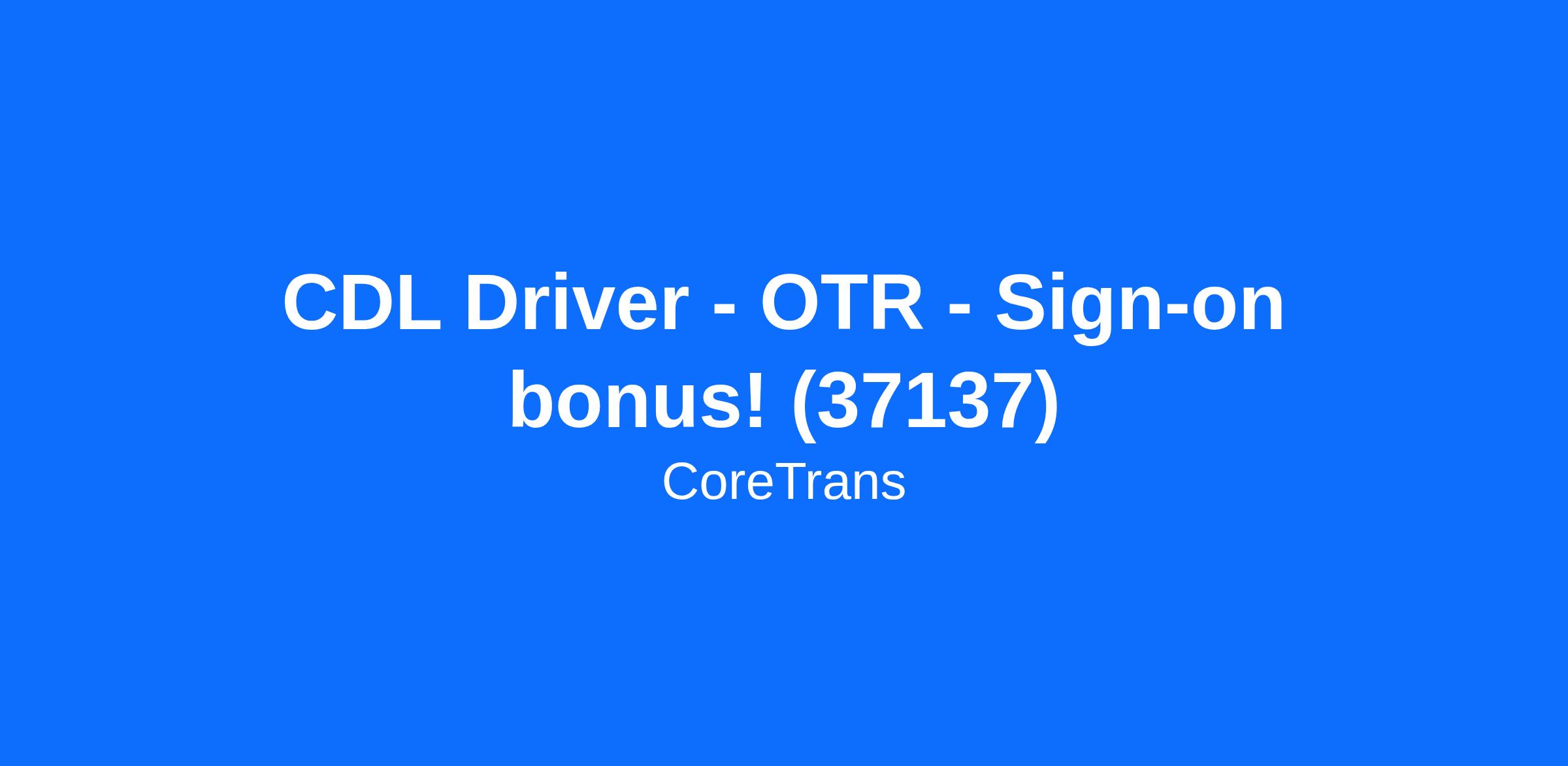 CDL Driver - OTR - Sign-on bonus! (37137)