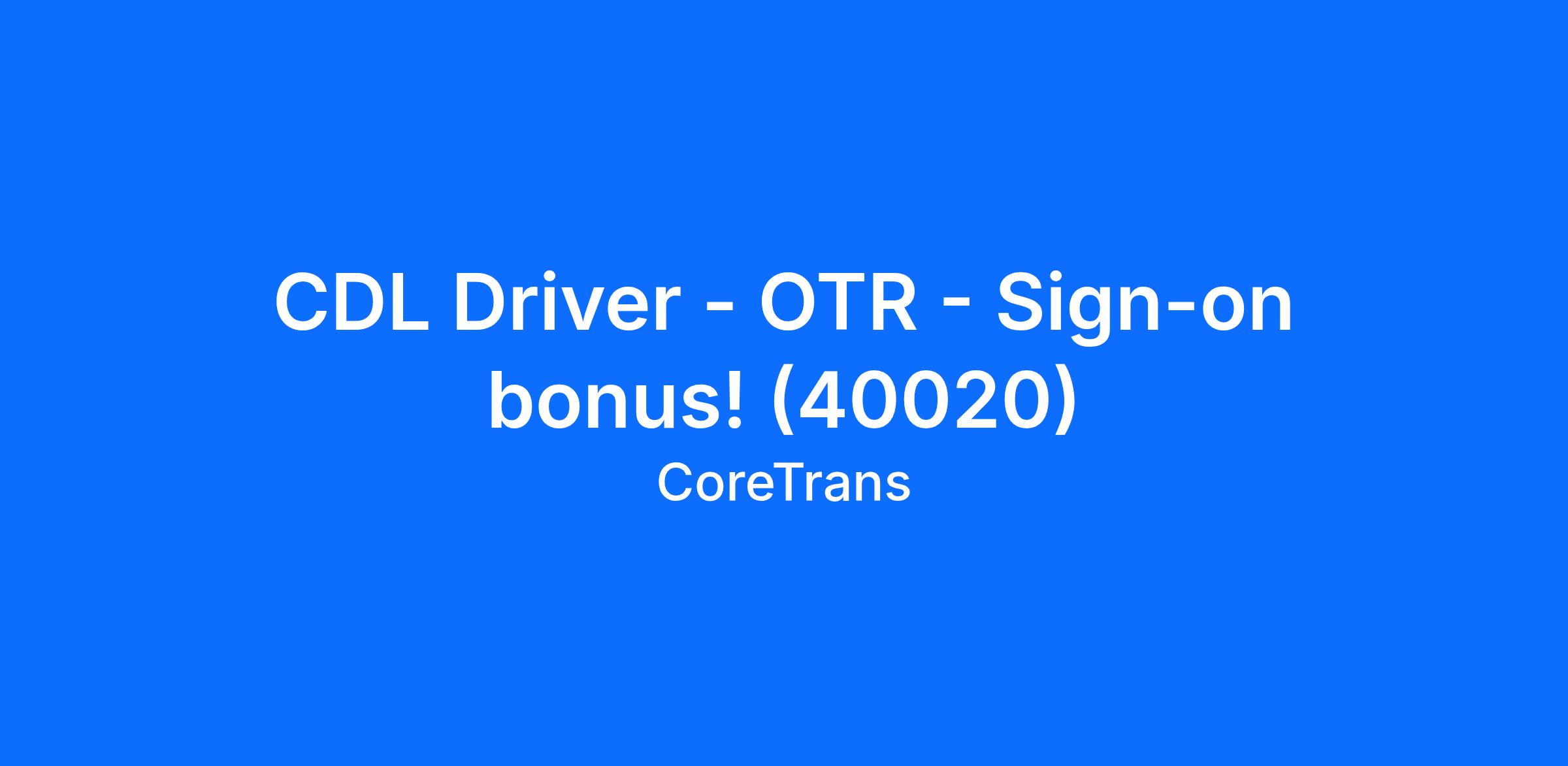 CDL Driver - OTR - Sign-on bonus! (40020)