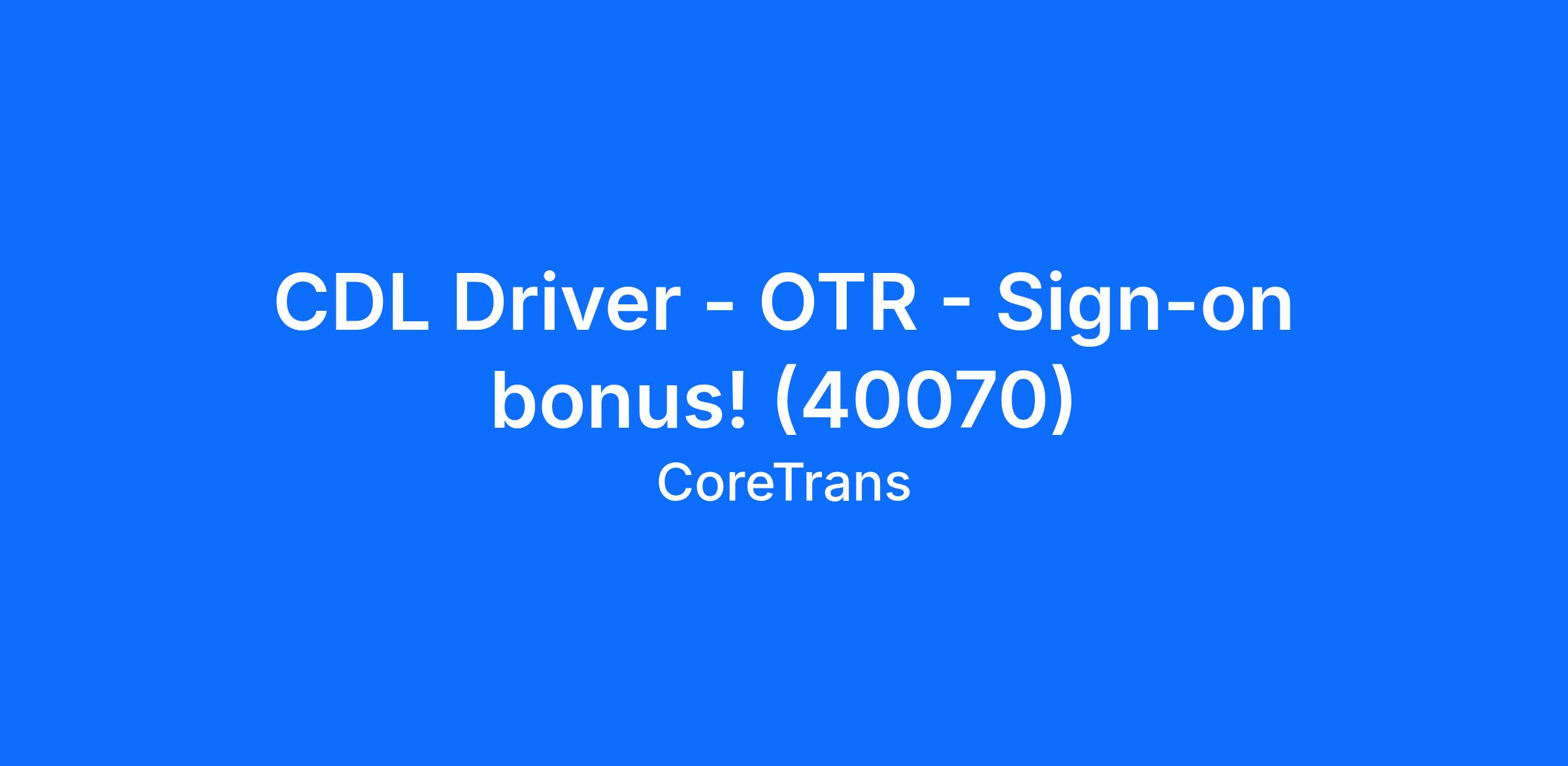 CDL Driver - OTR - Sign-on bonus! (40070)