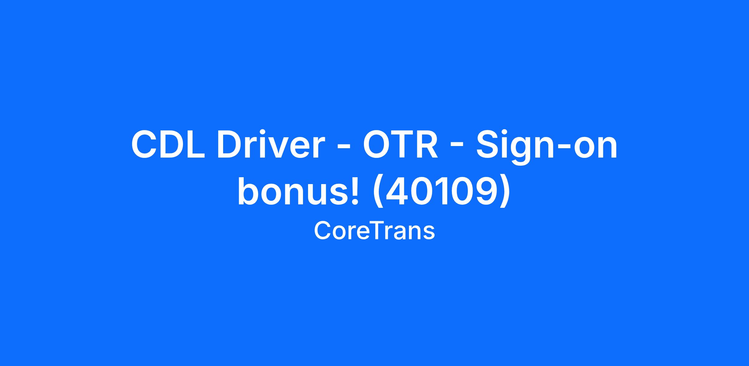 CDL Driver - OTR - Sign-on bonus! (40109)