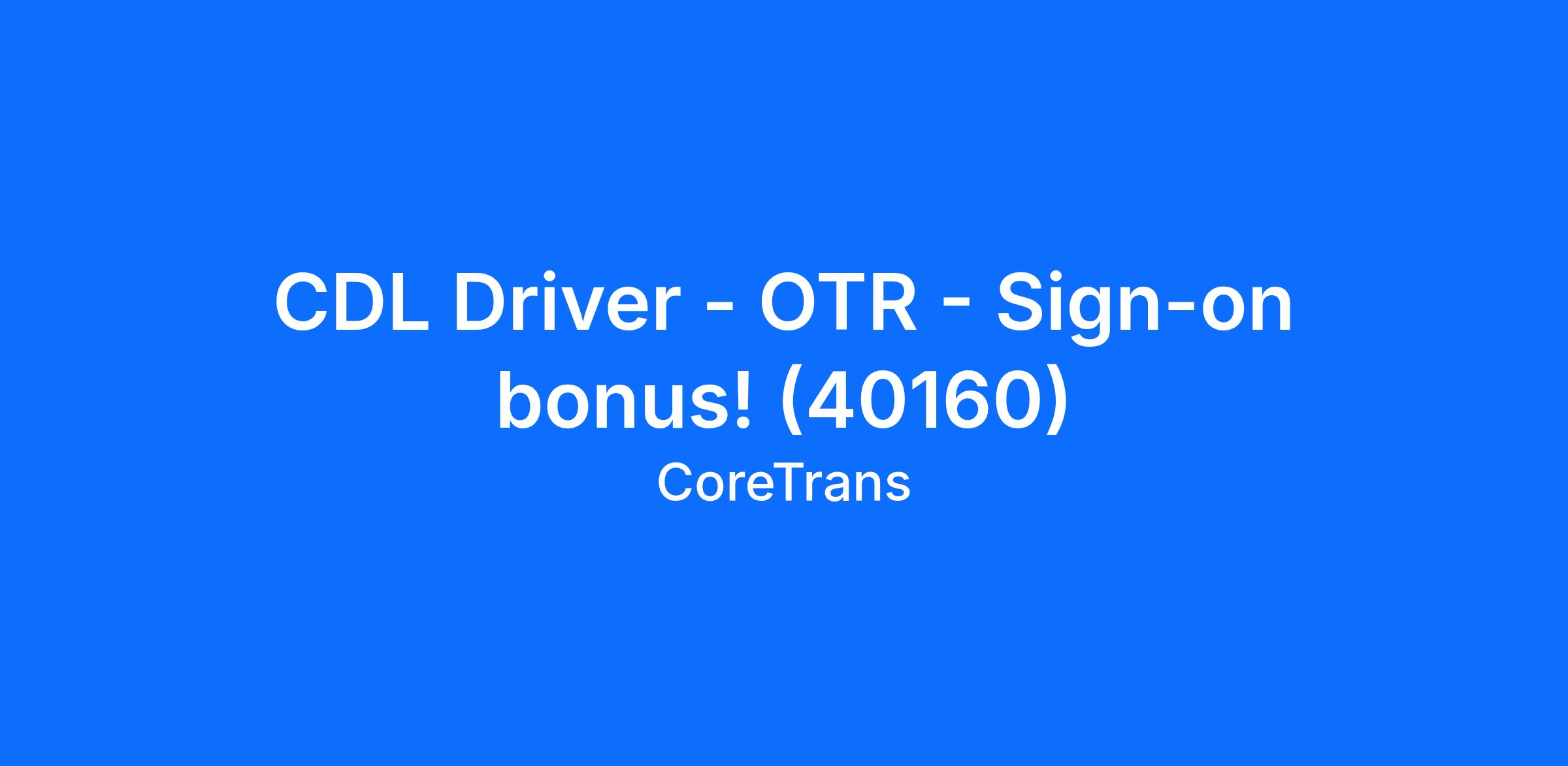CDL Driver - OTR - Sign-on bonus! (40160)