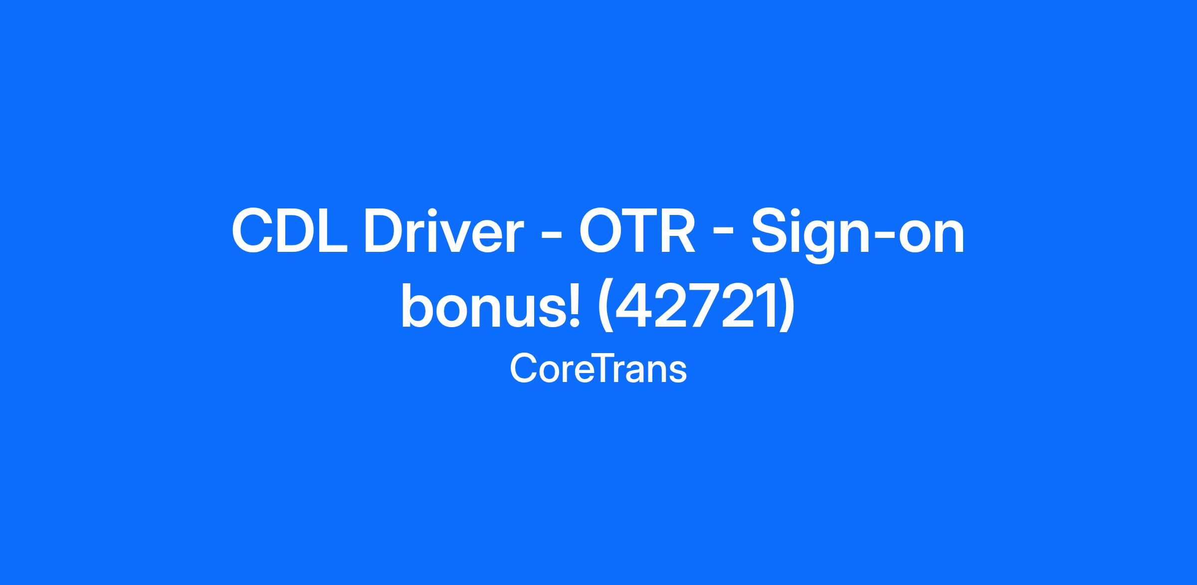 CDL Driver - OTR - Sign-on bonus! (42721)