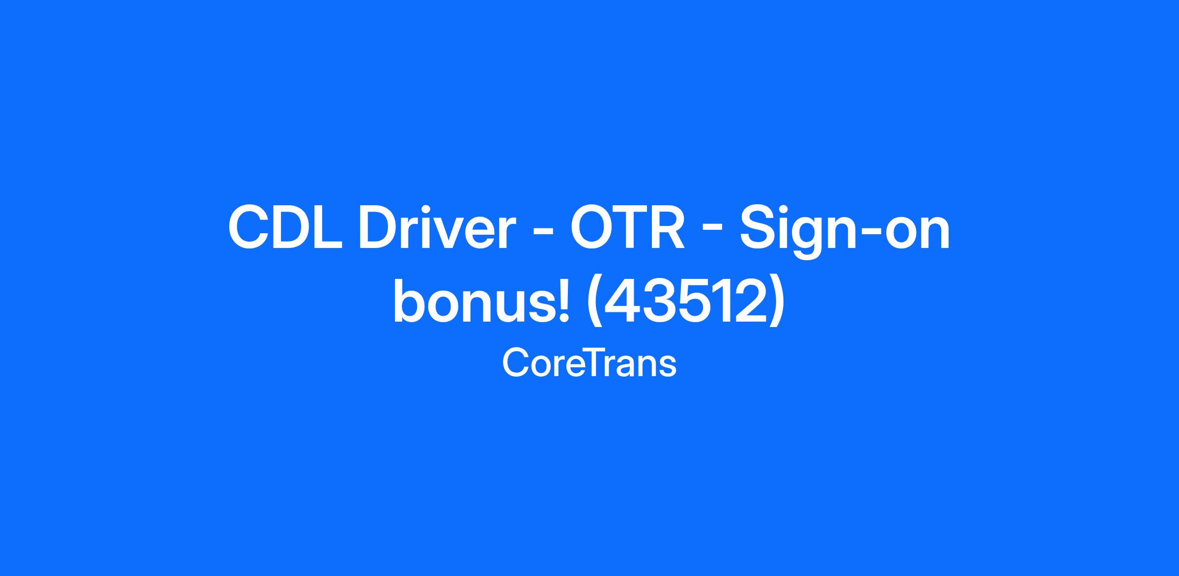 CDL Driver - OTR - Sign-on bonus! (43512)