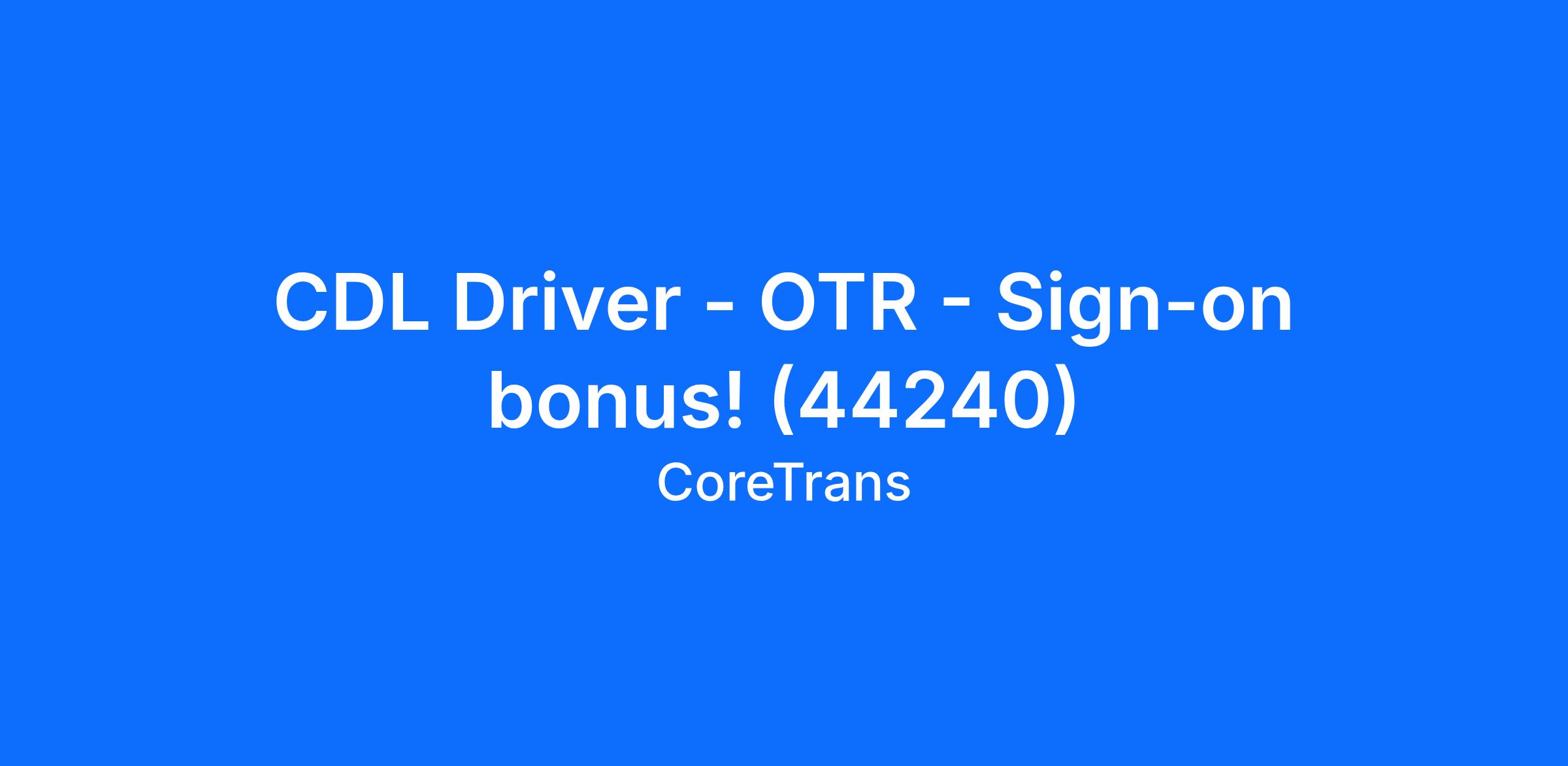 CDL Driver - OTR - Sign-on bonus! (44240)