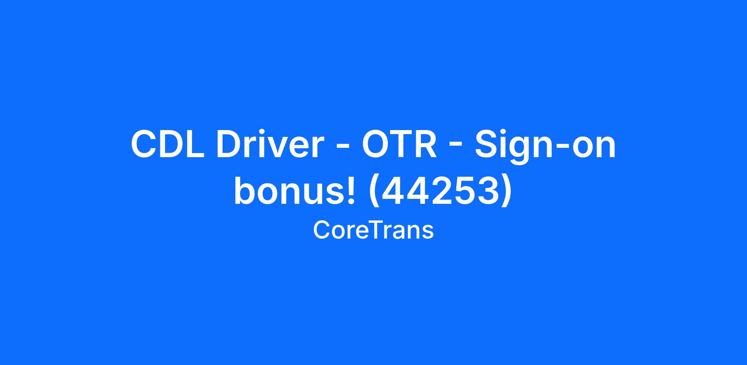 CDL Driver - OTR - Sign-on bonus! (44253)