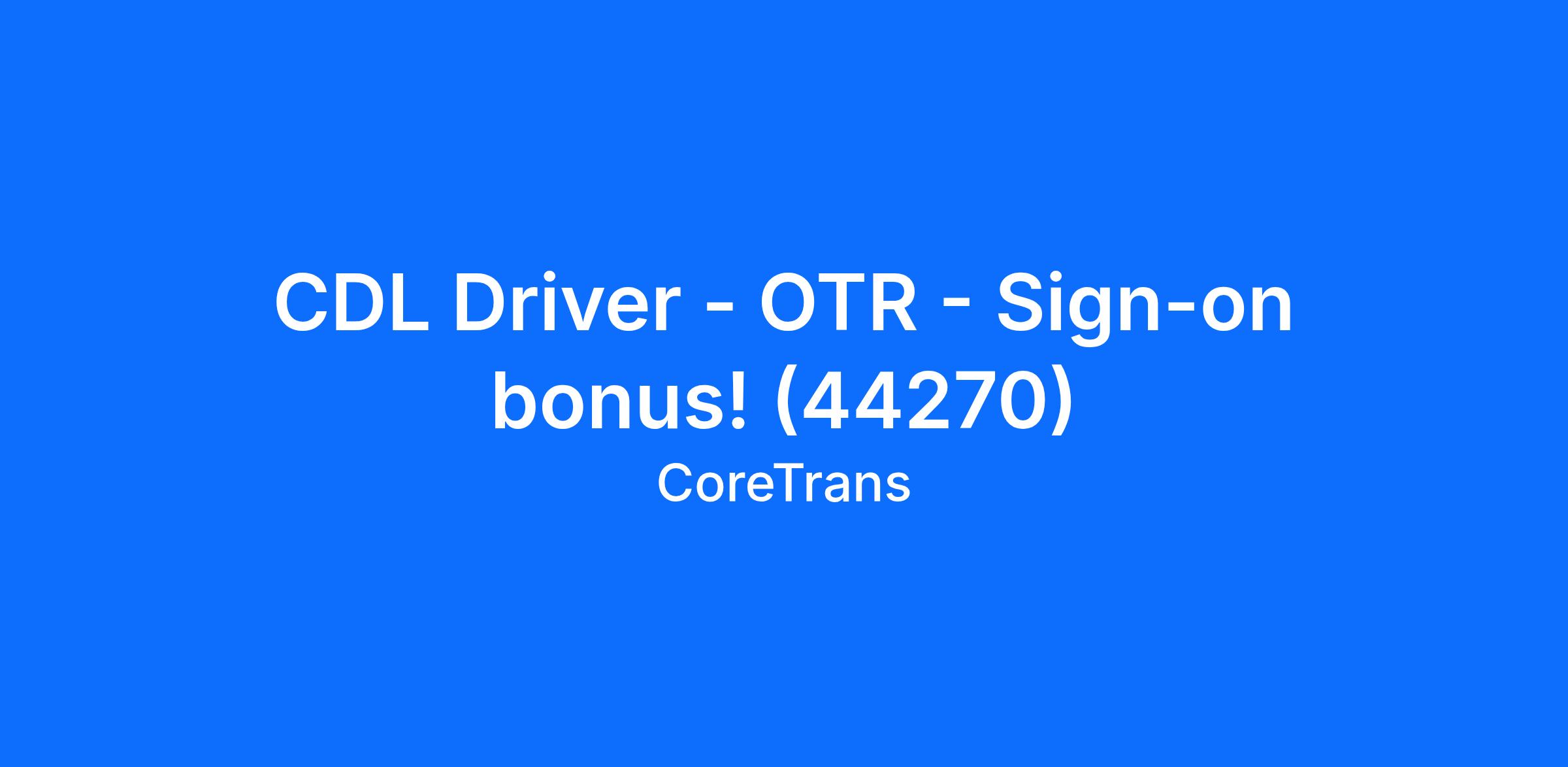 CDL Driver - OTR - Sign-on bonus! (44270)
