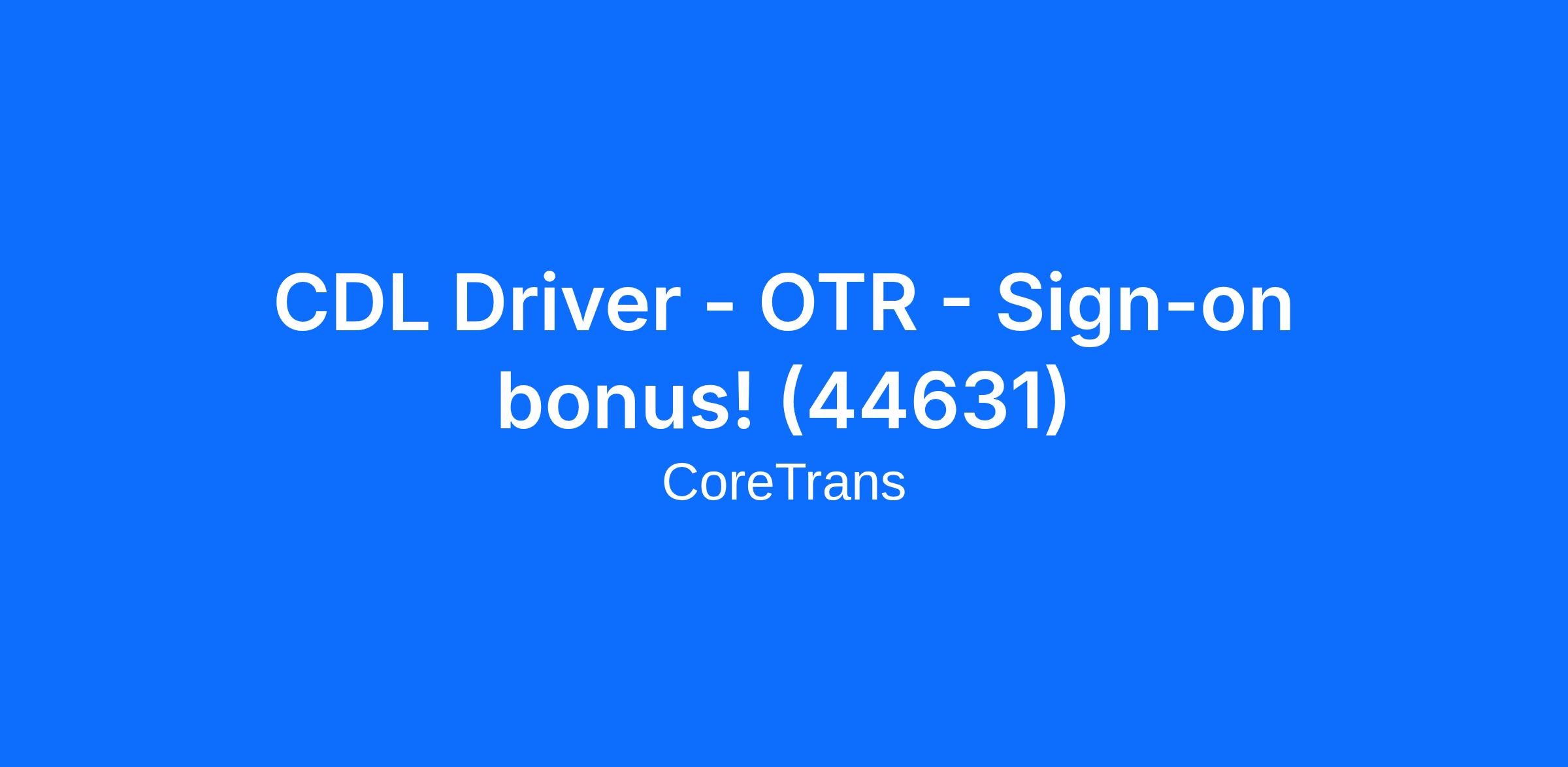 CDL Driver - OTR - Sign-on bonus! (44631)