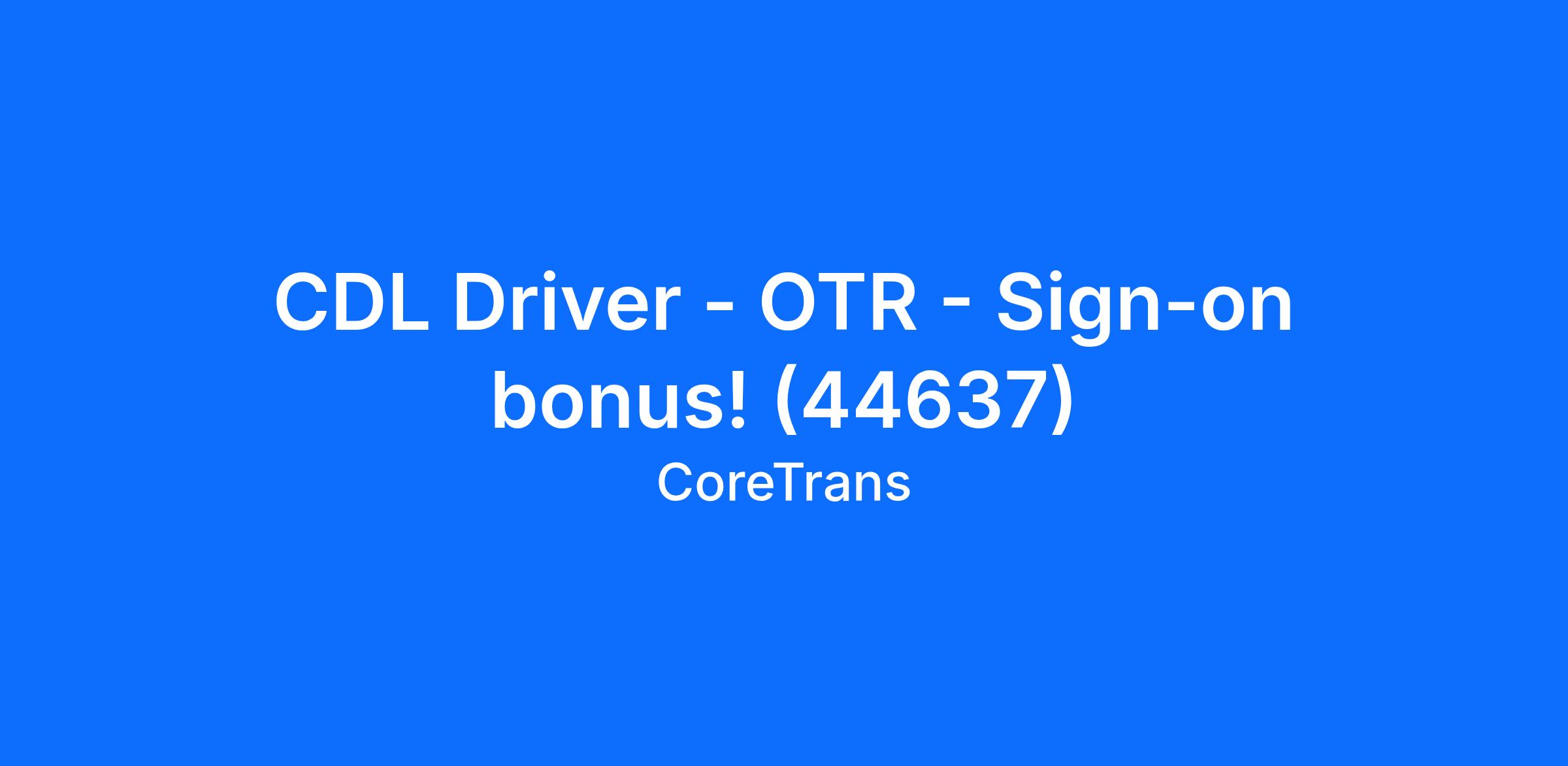 CDL Driver - OTR - Sign-on bonus! (44637)