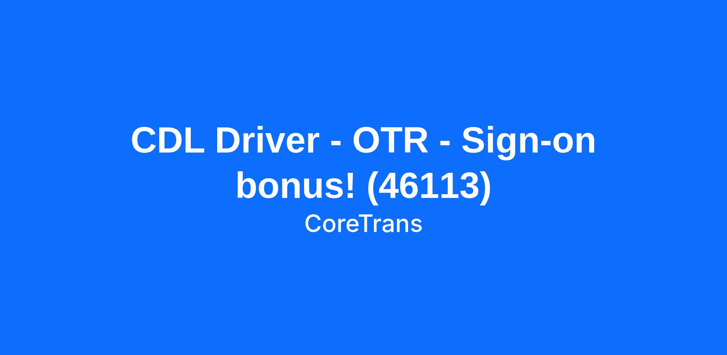 CDL Driver - OTR - Sign-on bonus! (46113)