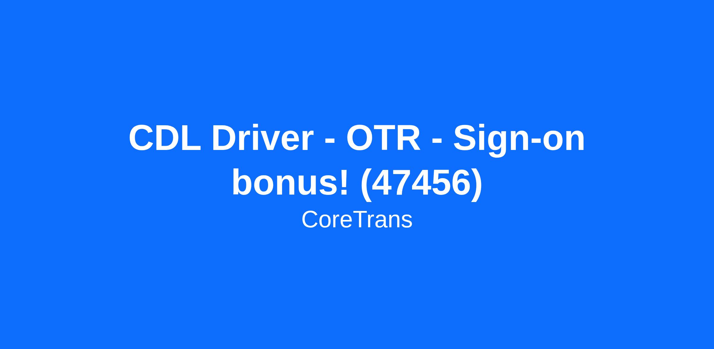 CDL Driver - OTR - Sign-on bonus! (47456)