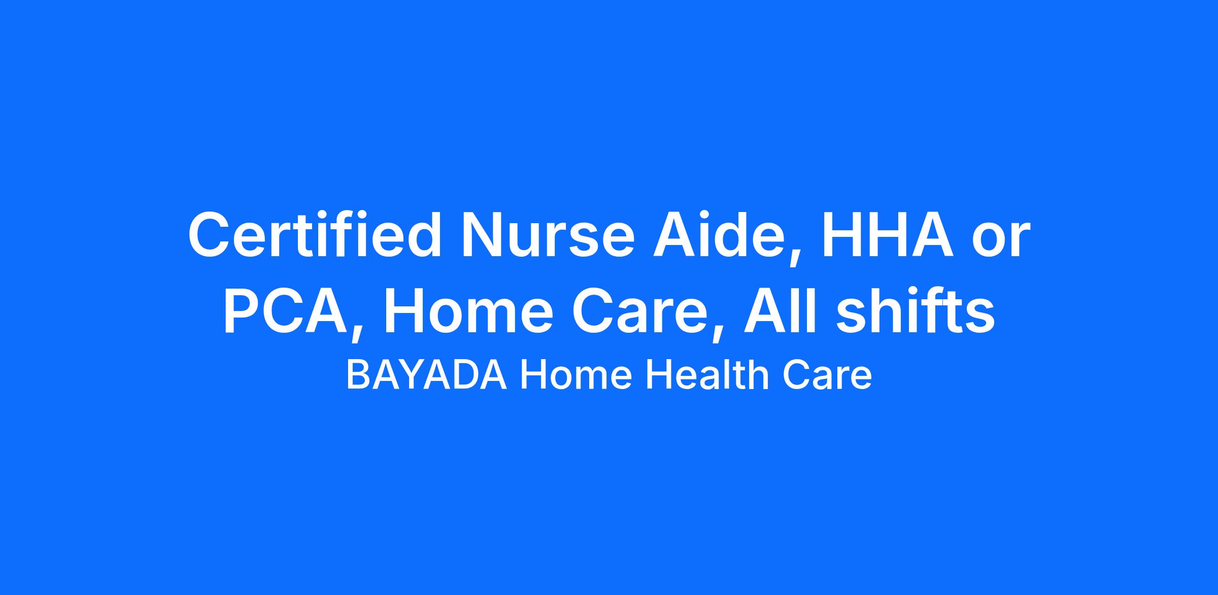 Bayada Home Health Care - JobID: 830####### [CNA / Health Aide] As a Certified Nurse Aide at Bayada Home Health Care, you'll: Do light housekeeping; Assist in bathing, dressing, grooming, toileting, nail care, exercises, transfers and other daily living activities; Check vital signs, such as temperature, pulse, respiration; Do home management tasks, including laundry, meal preparation, bed making, etc; Assist with ambulation and medication...Hiring Immediately >>