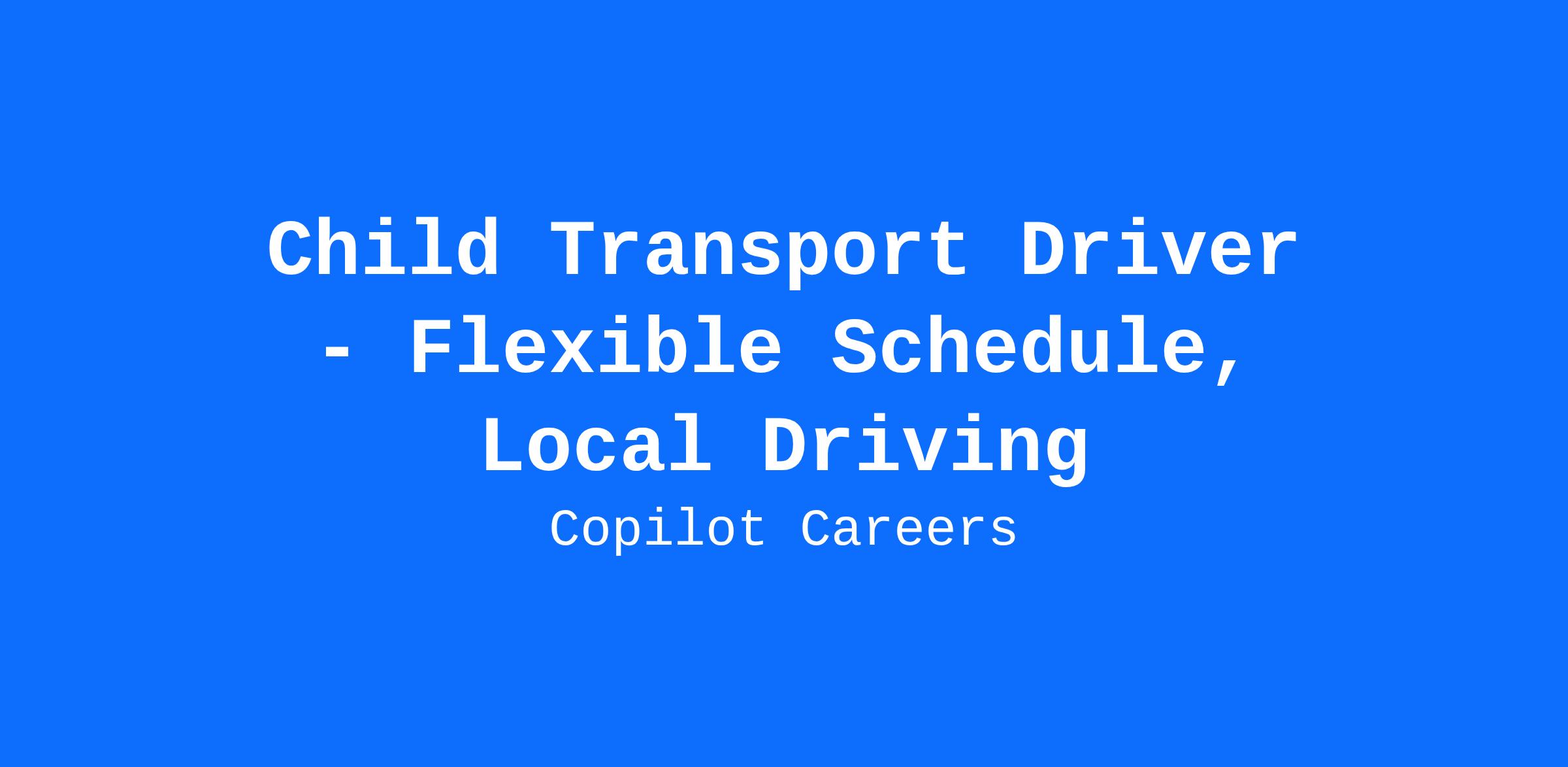 Child Transport Driver - Flexible Schedule, Local Driving