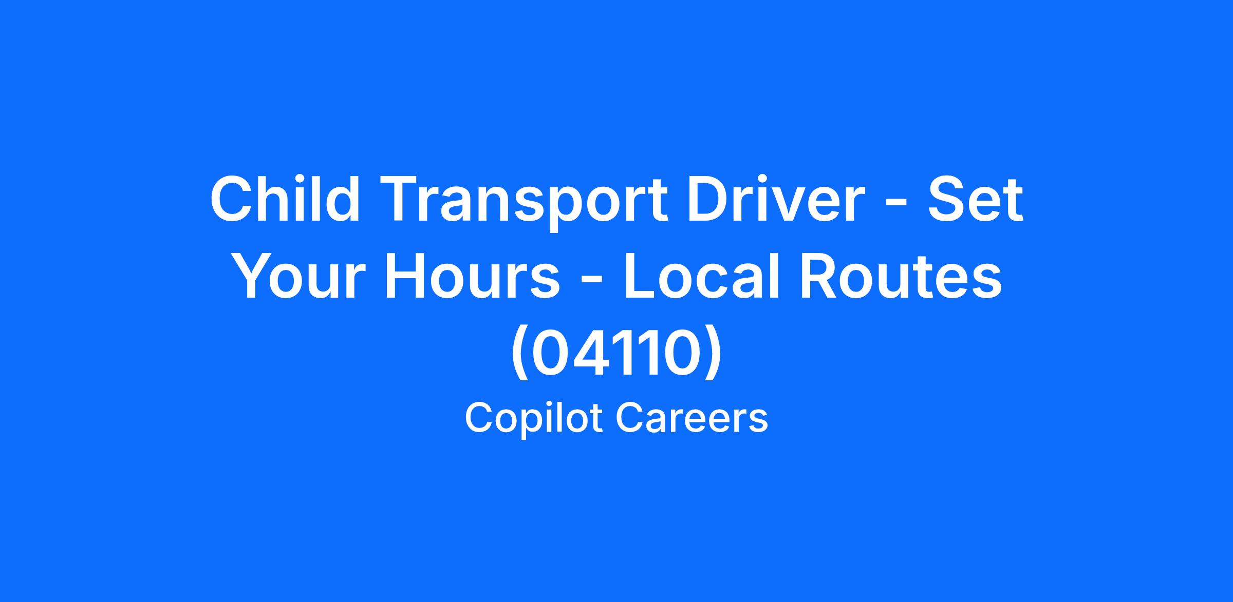Child Transport Driver - Set Your Hours - Local Routes (04110)