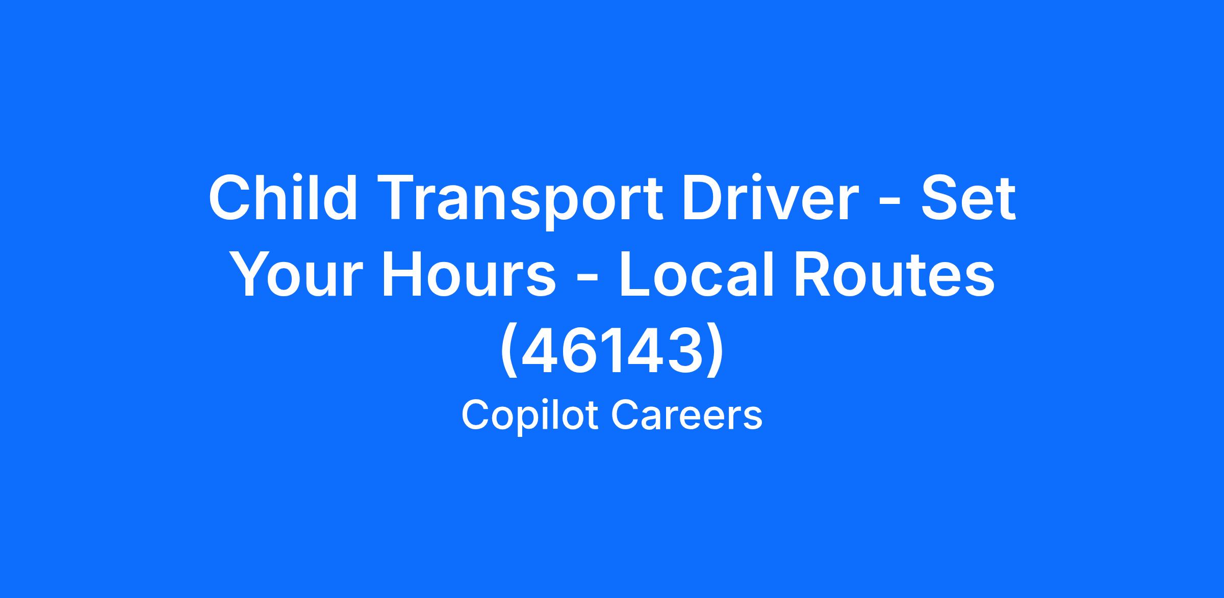 Child Transport Driver - Set Your Hours - Local Routes (46143)