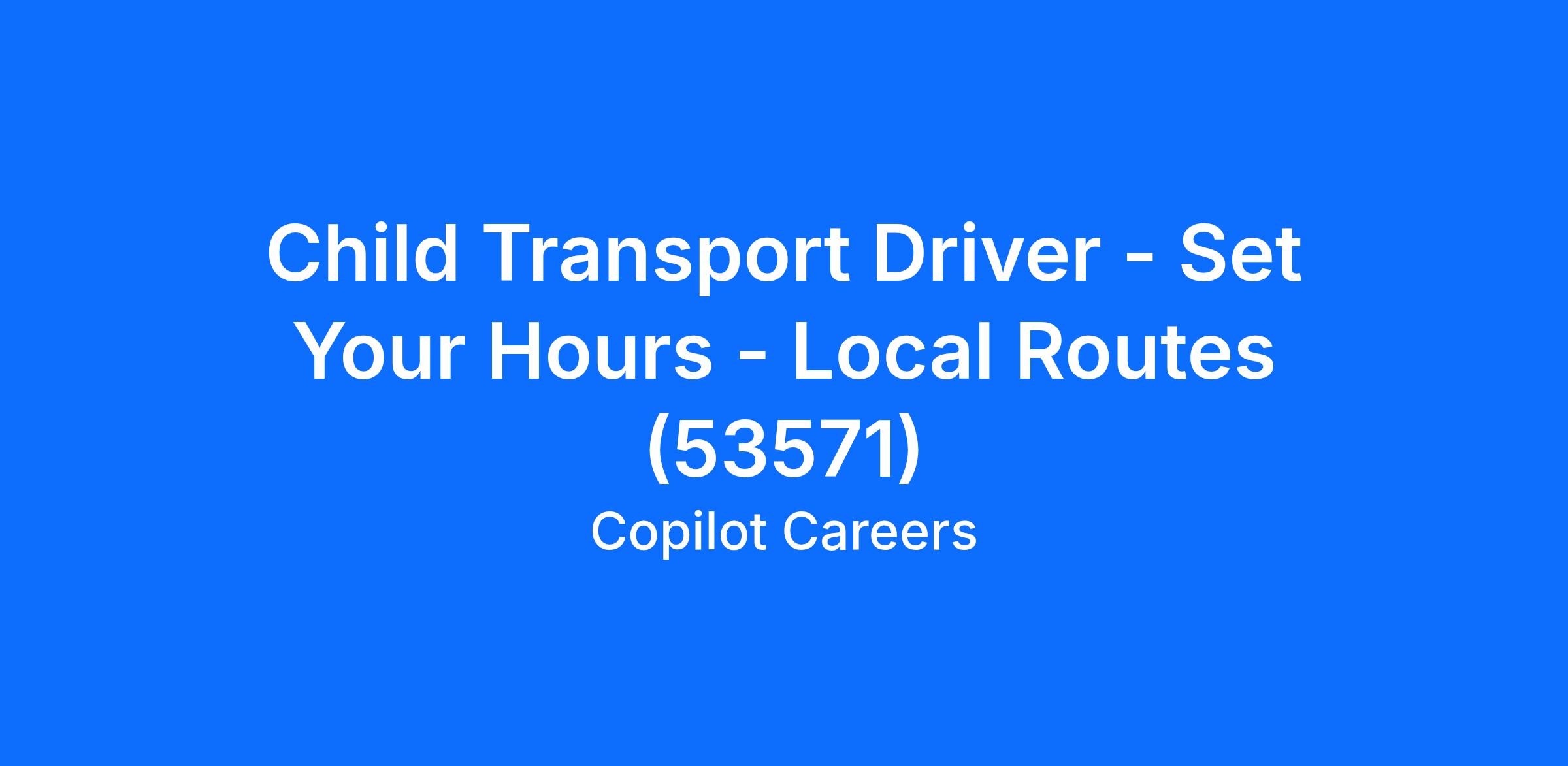 Child Transport Driver - Set Your Hours - Local Routes (53571)