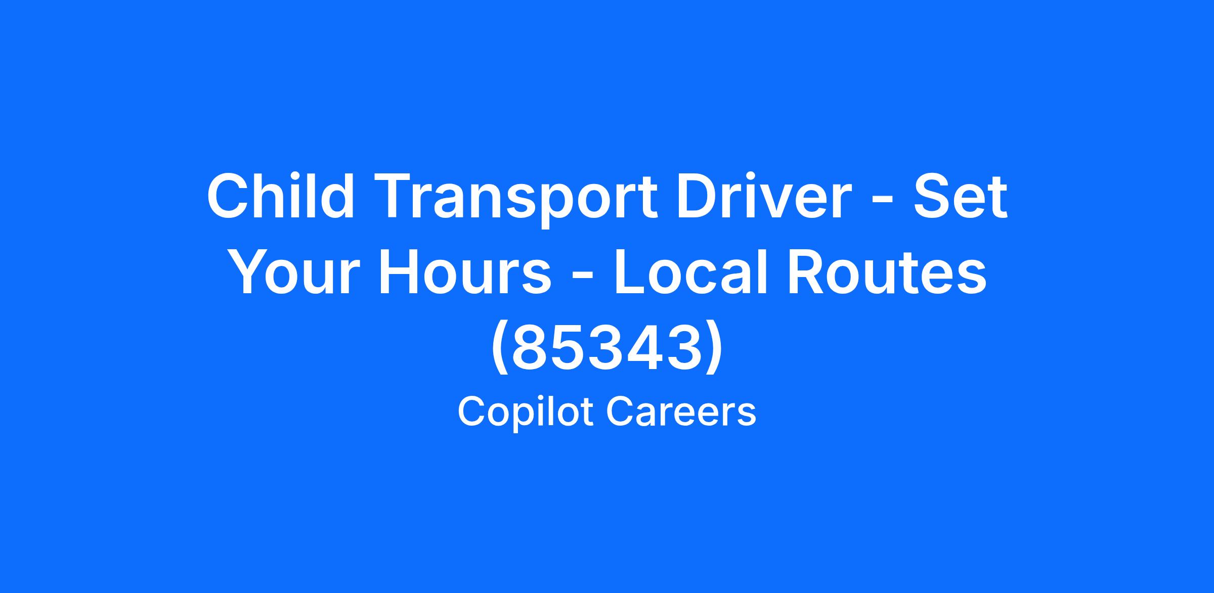 Child Transport Driver - Set Your Hours - Local Routes (85343)