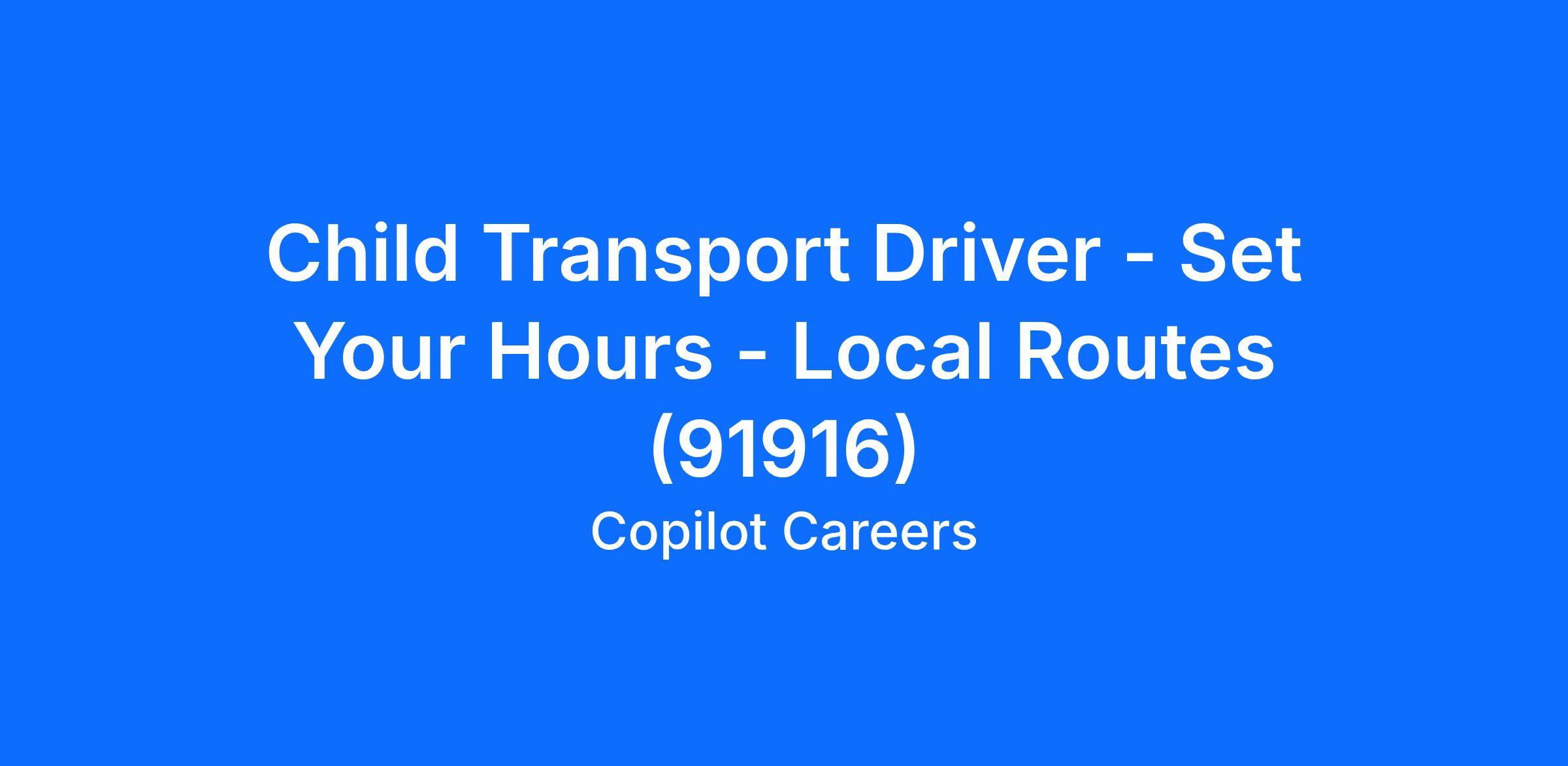Child Transport Driver - Set Your Hours - Local Routes (91916)