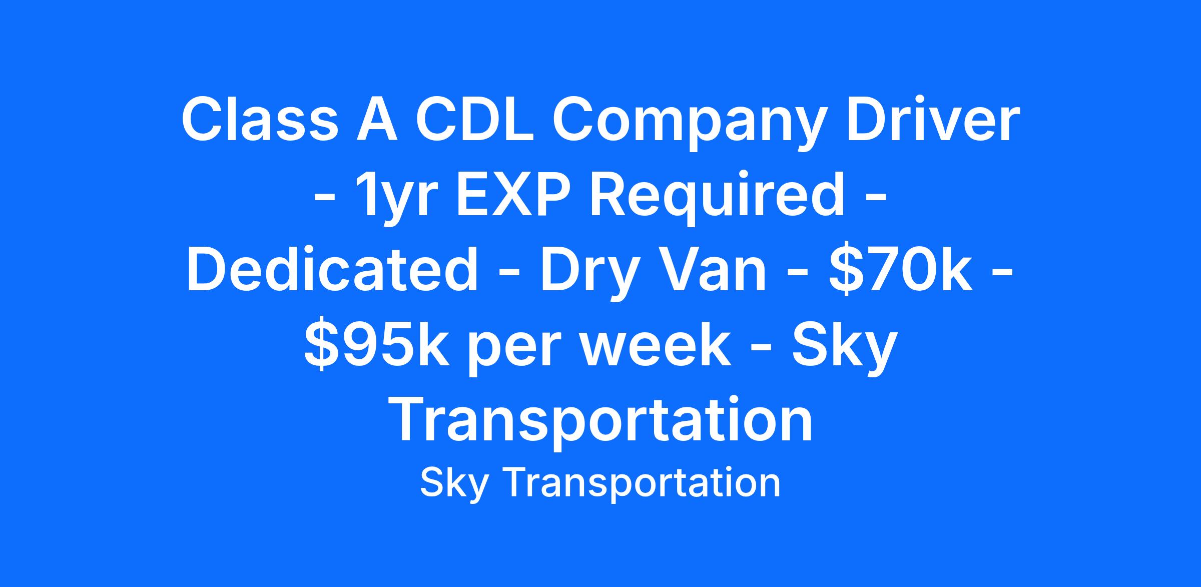 Sky Transportation Services is a driver focused culture that is seeking experienced drivers for our company fleet. If you're interested in a rewarding career with one of the industry's fastest growing and highest recommender transportation companies, apply for over-the-road truck driving opportunities with us today!