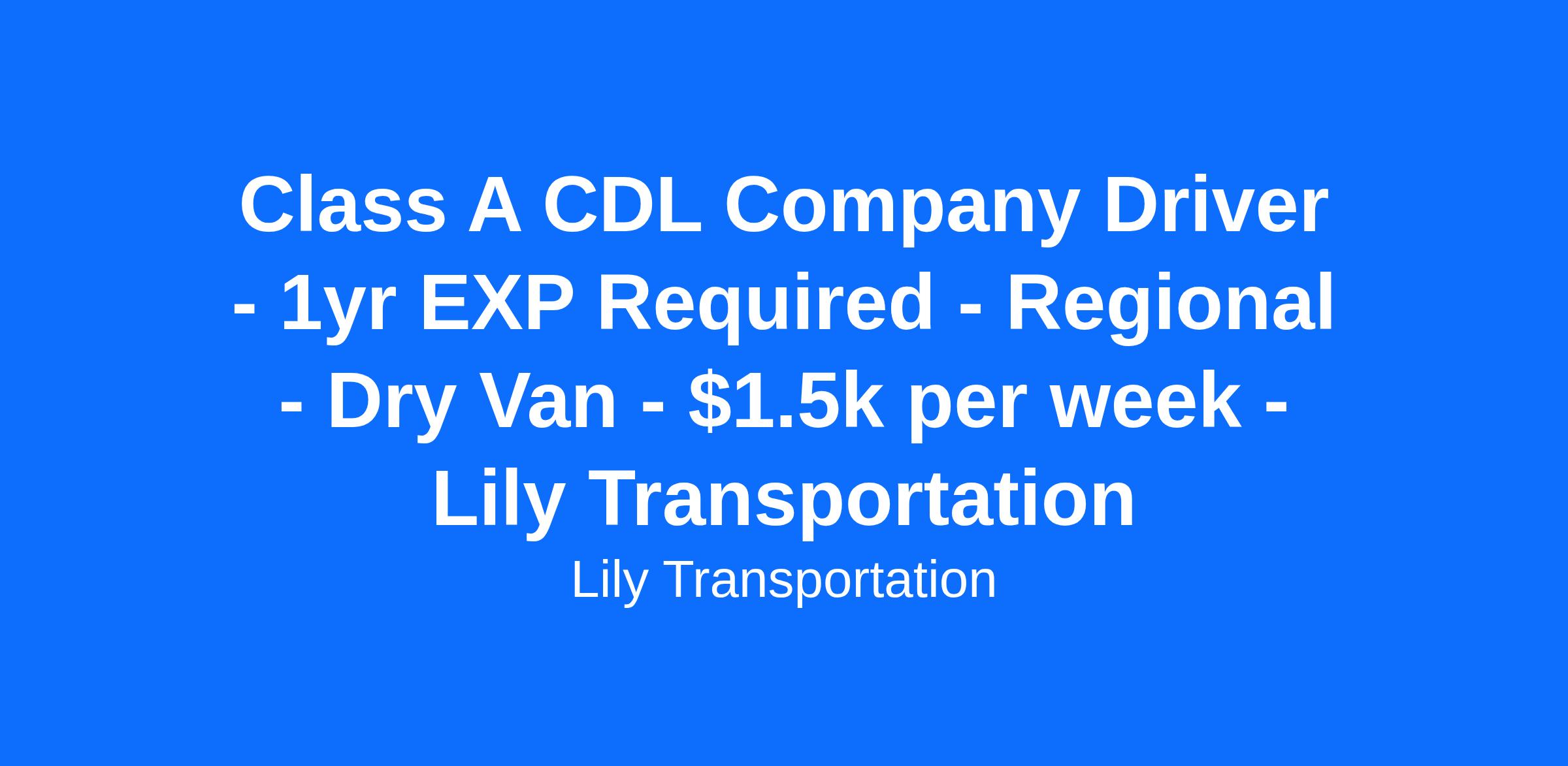 Class A CDL Company Driver - 1yr EXP Required - Regional - Dry Van - $1.5k per week - Lily Transportation