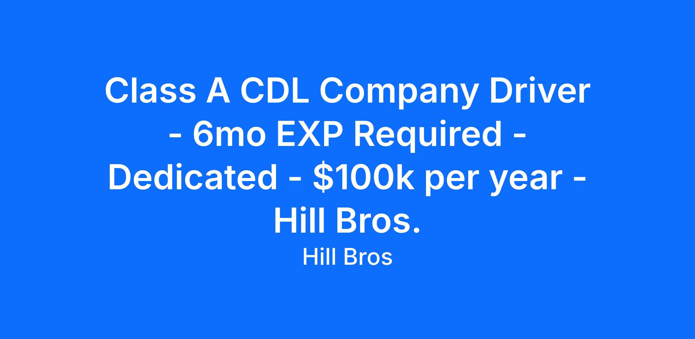 WHY DRIVE FOR HILL BROS?