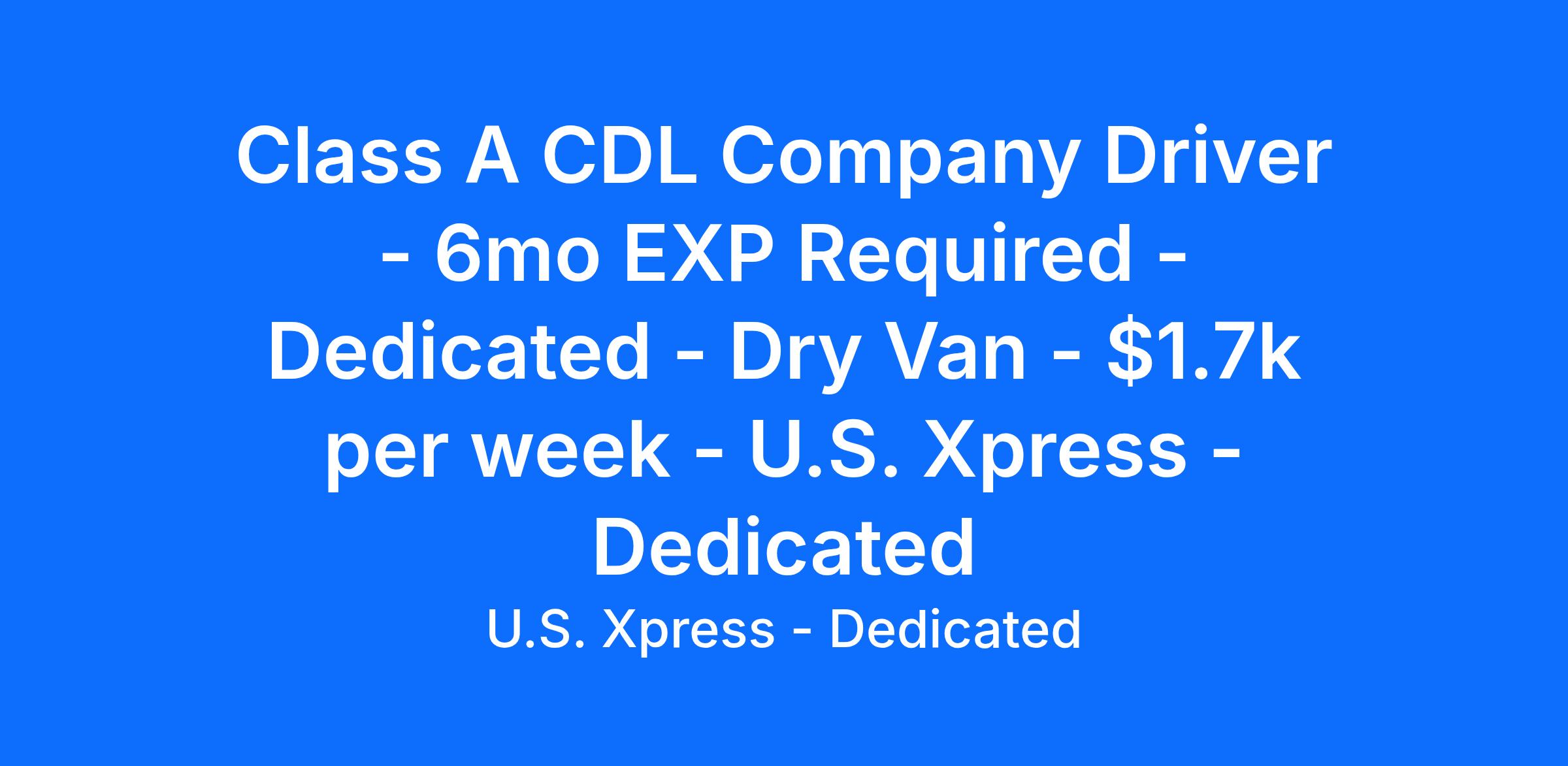 Class A CDL Company Driver - 6mo EXP Required - Dedicated - Dry Van - $1.7k per week - U.S. Xpress - Dedicated