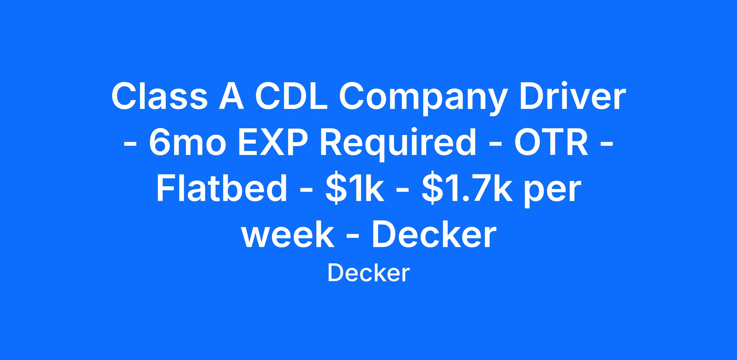 Class A CDL Company Driver - 6mo EXP Required - OTR - Flatbed - $1k - $1.7k per week - Decker
