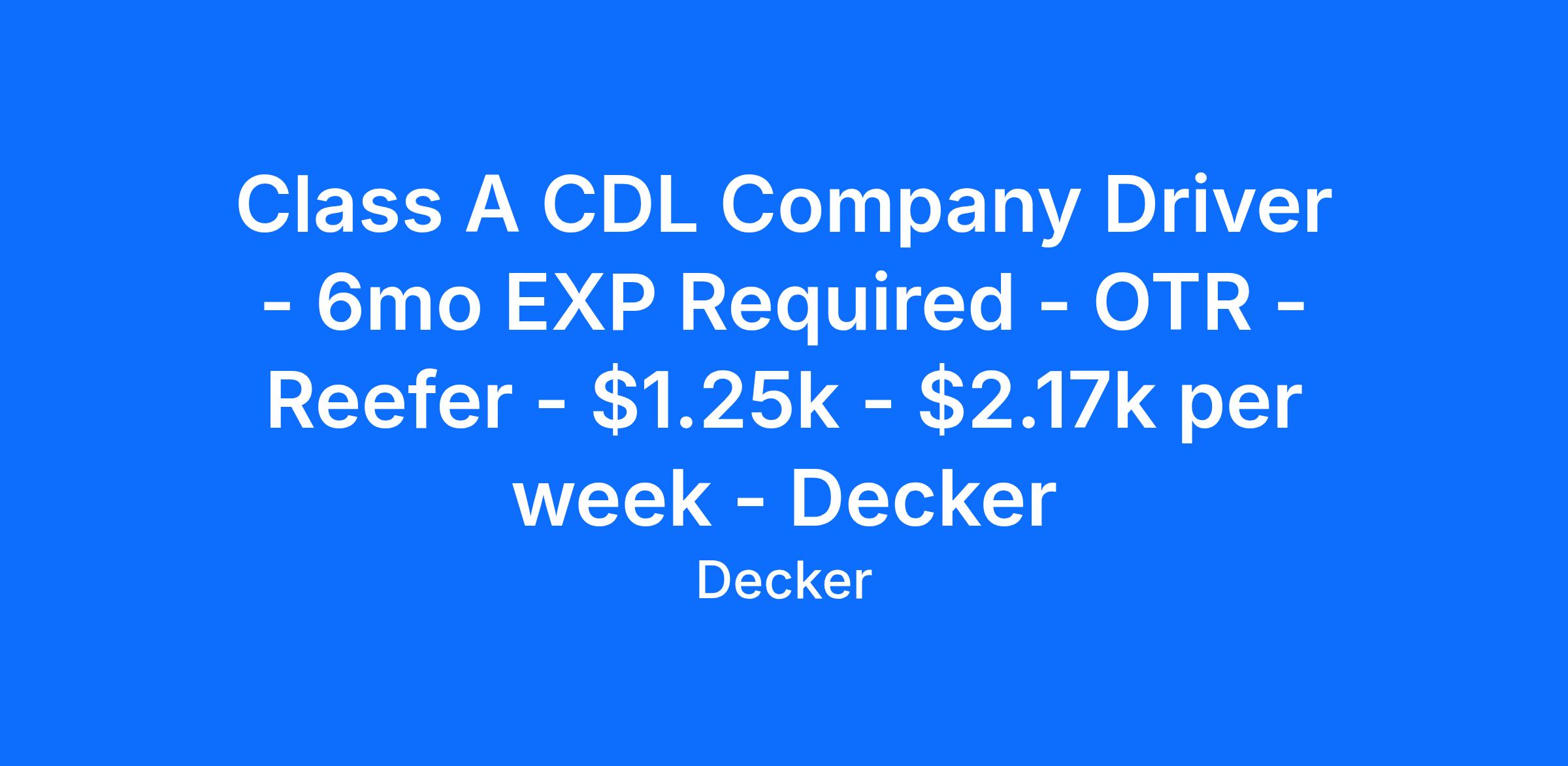 Class A CDL Company Driver - 6mo EXP Required - OTR - Reefer - $1.25k - $2.17k per week - Decker