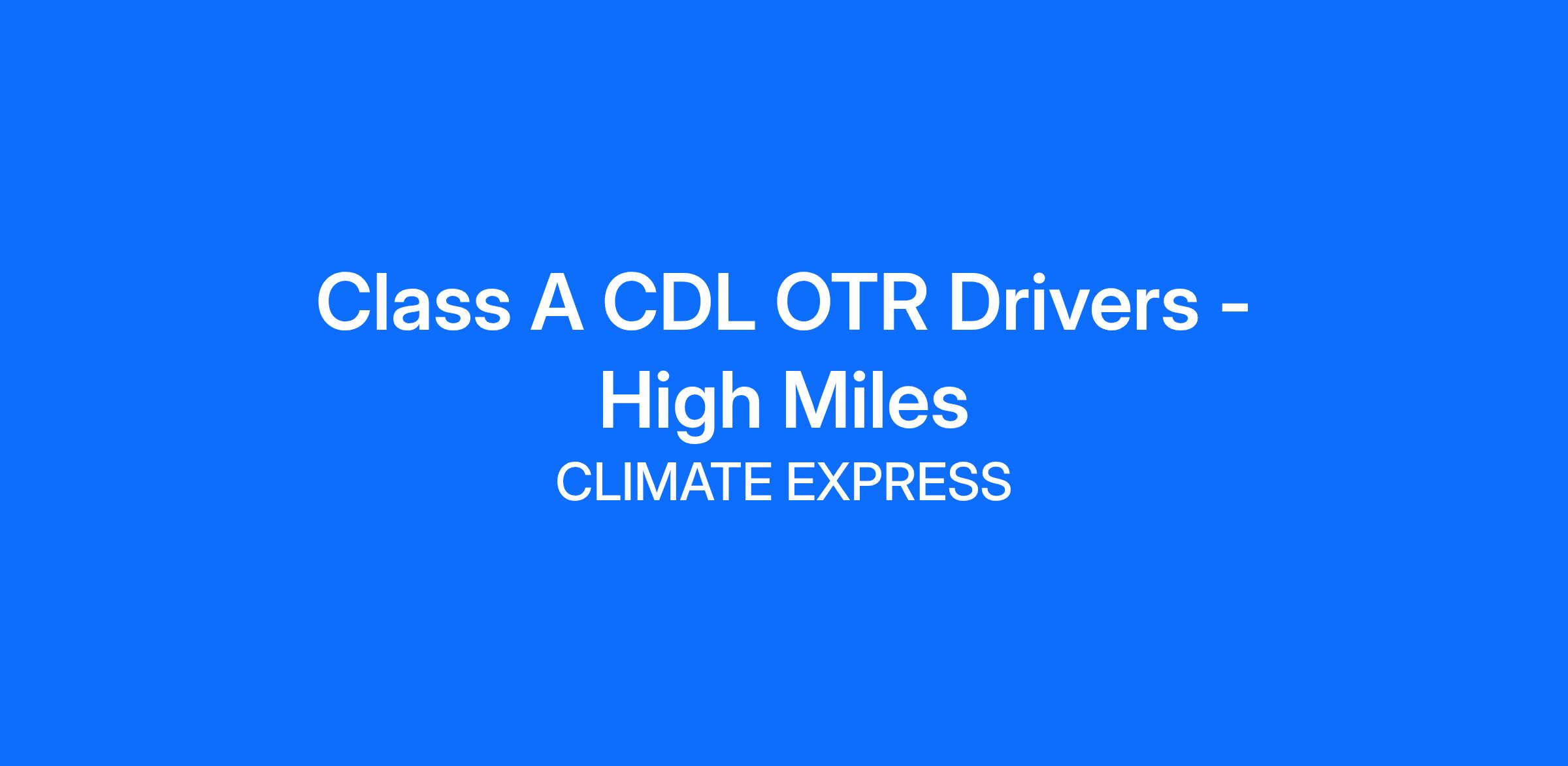 Class A CDL OTR Drivers - High Miles