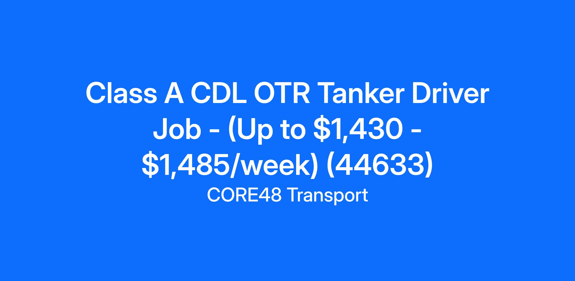 Class A CDL OTR Tanker Driver Job - (Up to $1,430 - $1,485/week) (44633)
